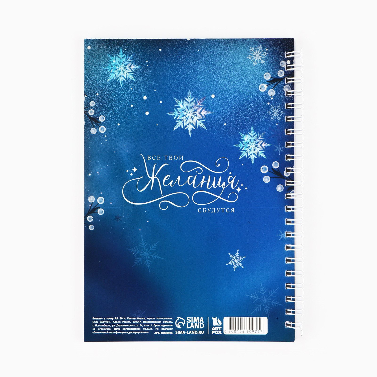 Размер упаковки: 14.5 x 20 x 1.5 см. Количество листов: 60 Рисунок: Да Цвет: Синий Адресат: Без адресата Материал обложки: Картон Формат: А5 Тематика праздника: Новый год Линовка блока: Точка Тип ежедневника: Недатированный tnved: 4820103000 Символ года: Нет Тип скрепления: На гребне/спирали Для кого: Унисекс Возраст: Детский Штрихкод на единице товара: Да Плотность, г/?2: 80 Вид обложки: Мягкая Белизна блока, %: 95-100 Вид застёжки: Без застёжки Закладка (ляссе): Нет Ежедневник с тиснением станет прекрасным подарком на праздник. • Мечтай; • Записывай; • Выполняй.