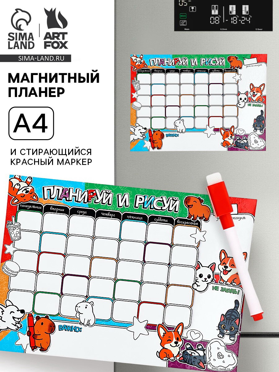 Магнитный планер А4 и стирающийся маркер "Животные", ArtFox, Россия
