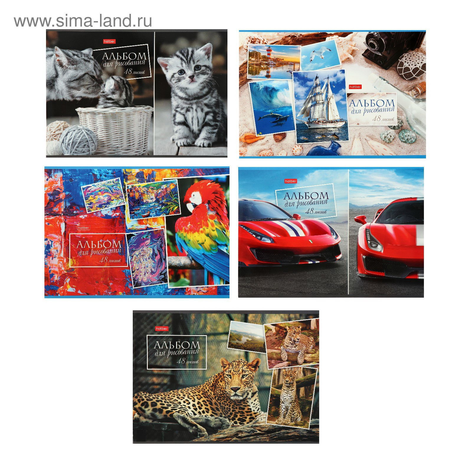 Альбом для рисования "Ассорти" А4, 48 листов, на скрепке, плотность листов 100 г/?2, обложка из мелованного картона, МИКС, Hatber, Россия