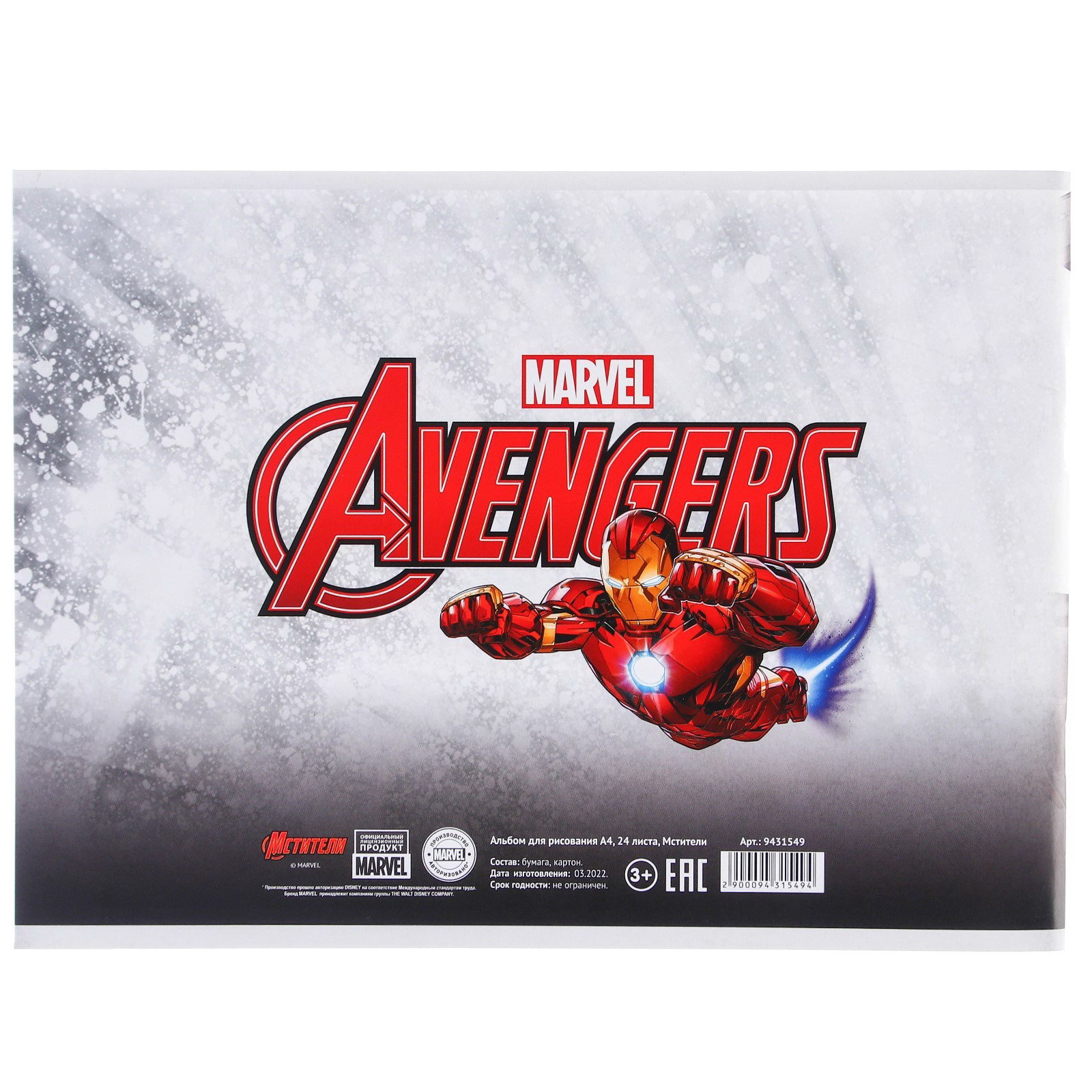Альбом для рисования А4, 24 листа 100 г/?2, на скрепке, "Мстители", MARVEL, Китай