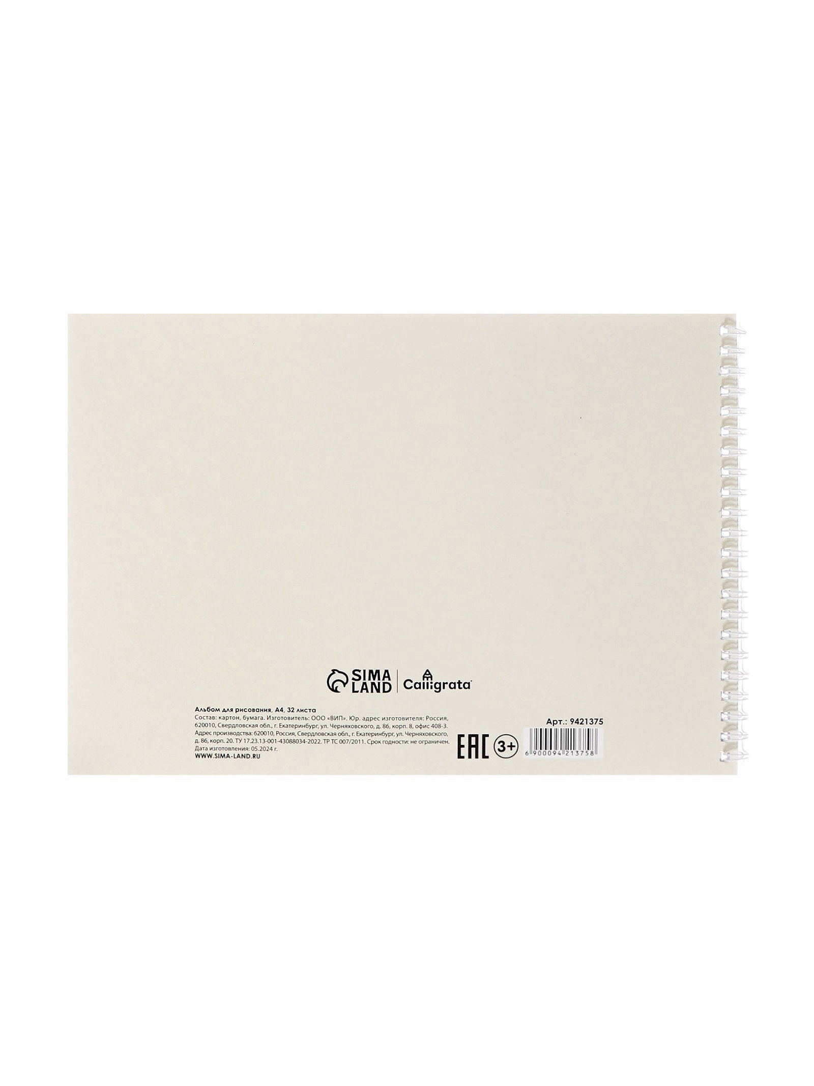 Альбом для рисования А4, 32 листа на гребне "КотоАльбом", обложка мелованный картон, блок офсет 100 г/?2, Calligrata, Россия