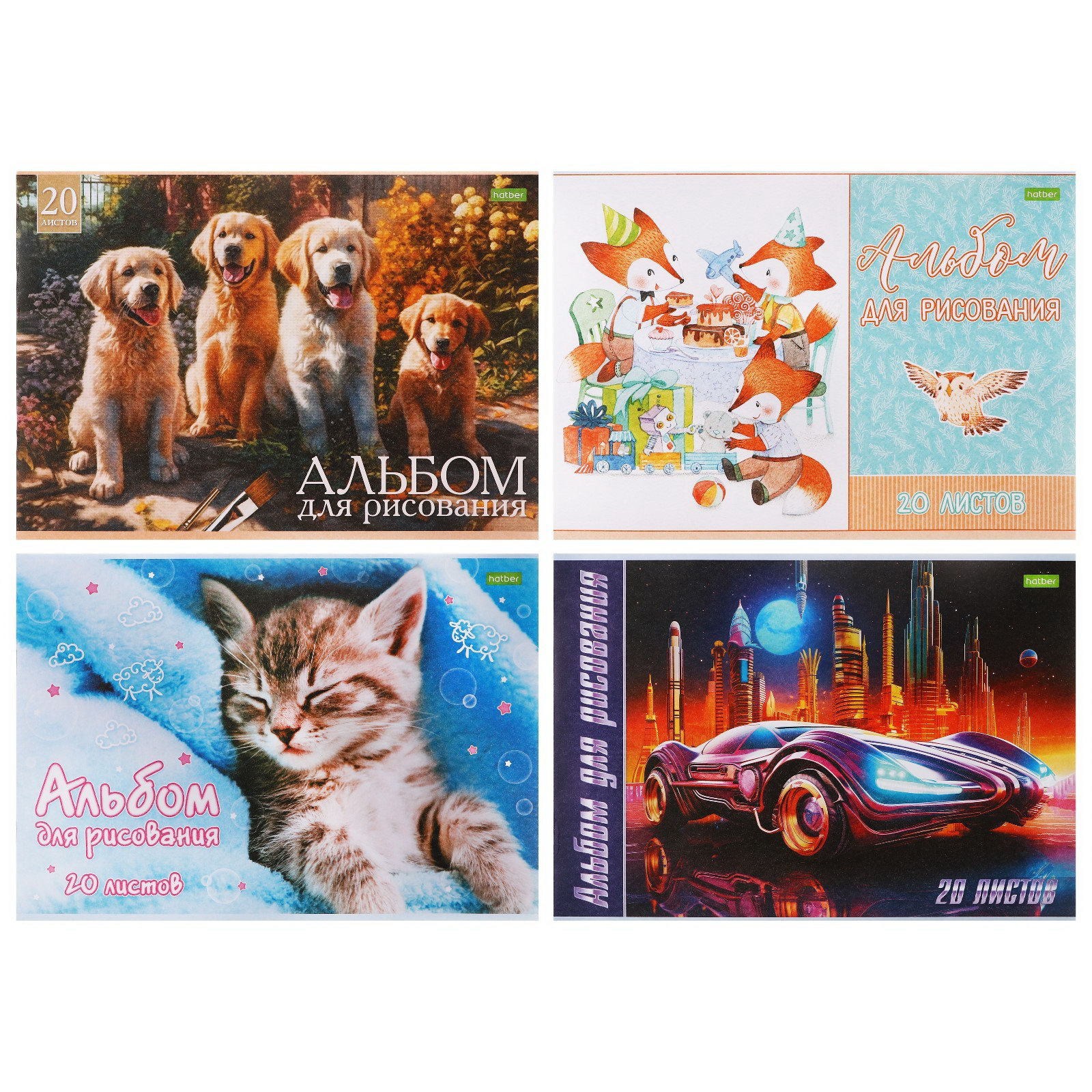 Альбом для рисования А4, 20 листов, на скрепке, "Ассорти" Выпуск №4, обложка офсетная бумага, блок 100 г/?2, МИКС, Hatber, Россия