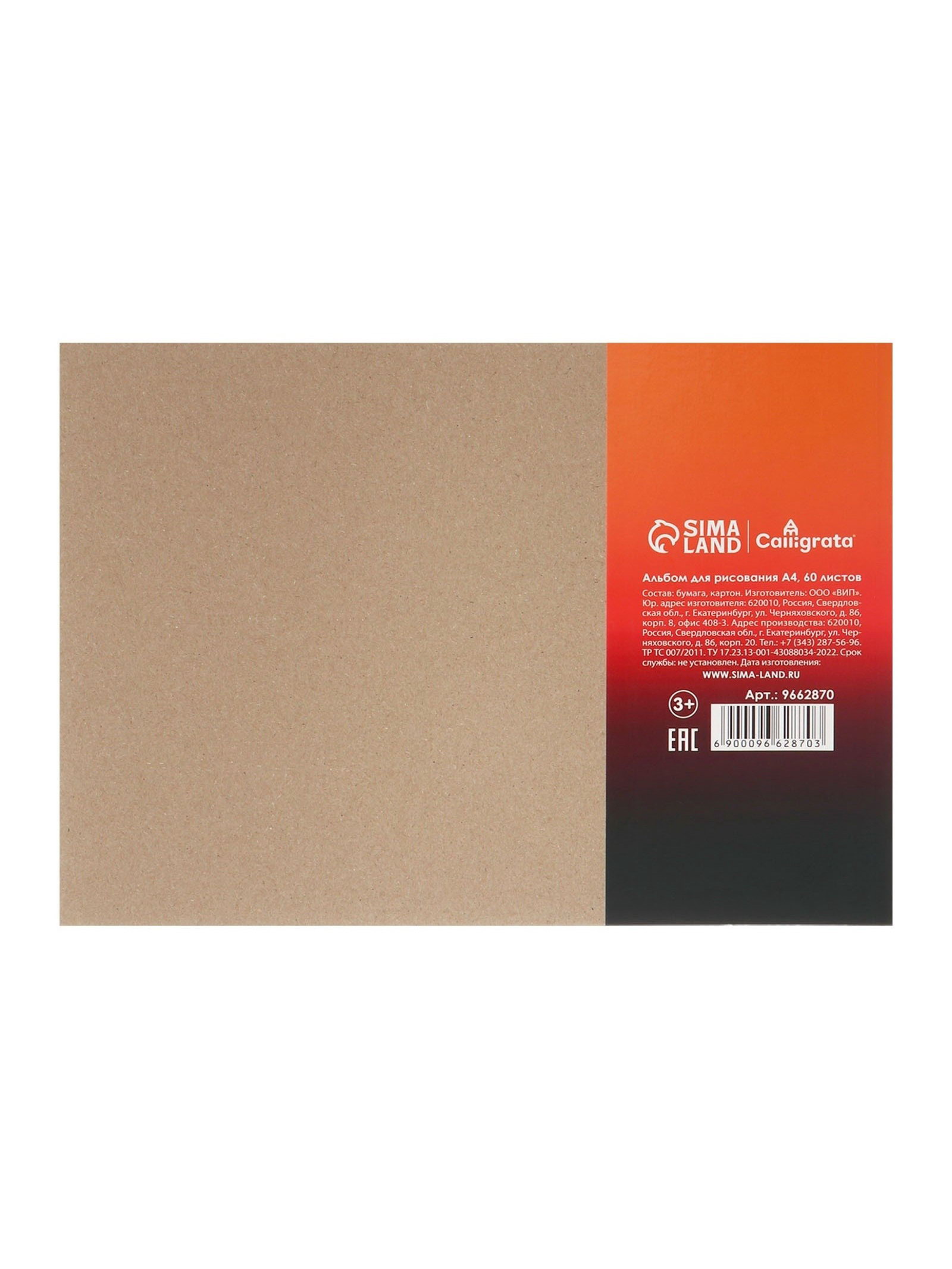 Альбом для рисования А4, 60 листов на склейке, обложка мелованный картон, твёрдая подложка, блок офсет 100 г/?2, Calligrata, Россия