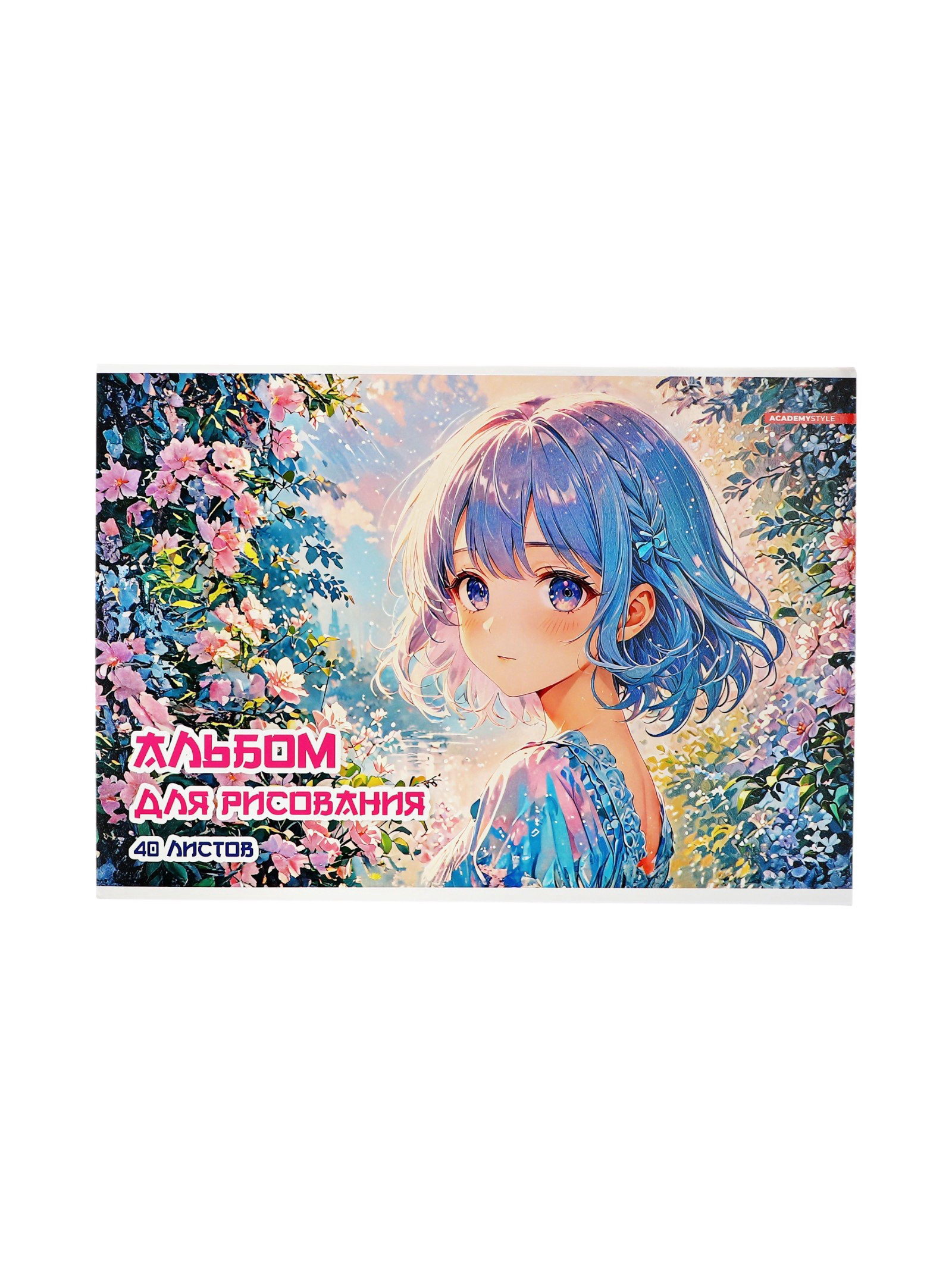 Альбом для рисования А4, 40 листов на клею "Кошка", выборочный УФ-лак, плотность листов 100 г/?2, Academy style, Россия