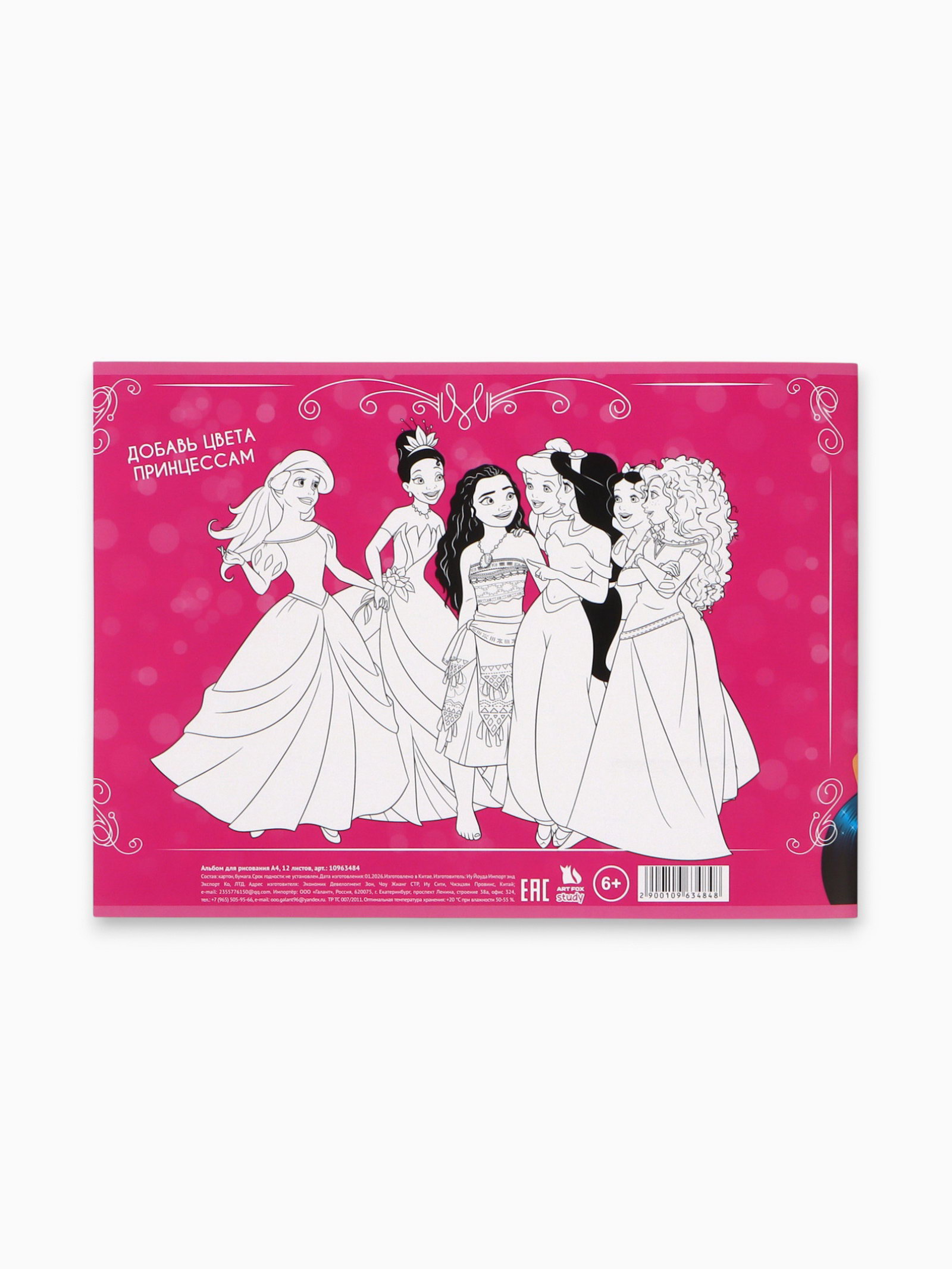 Альбом для рисования А4, 12 л "Принцессы Дисней", ArtFox STUDY, Китай