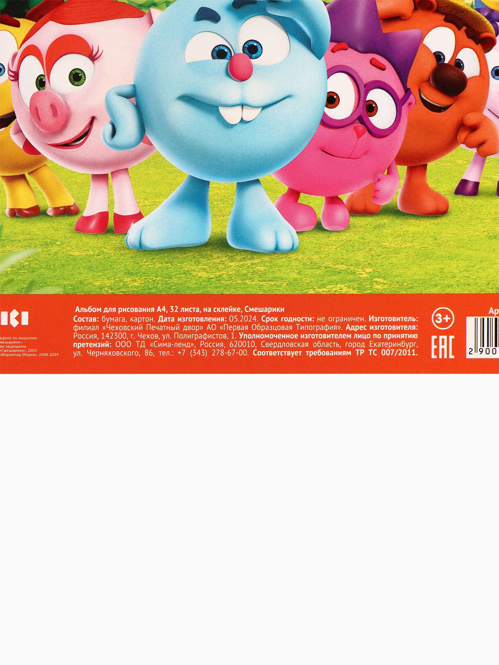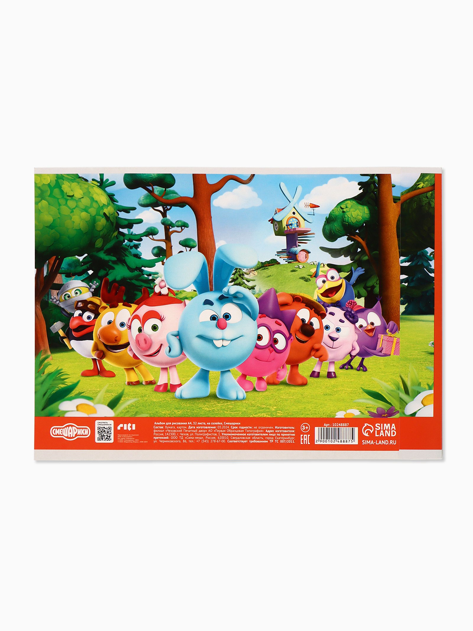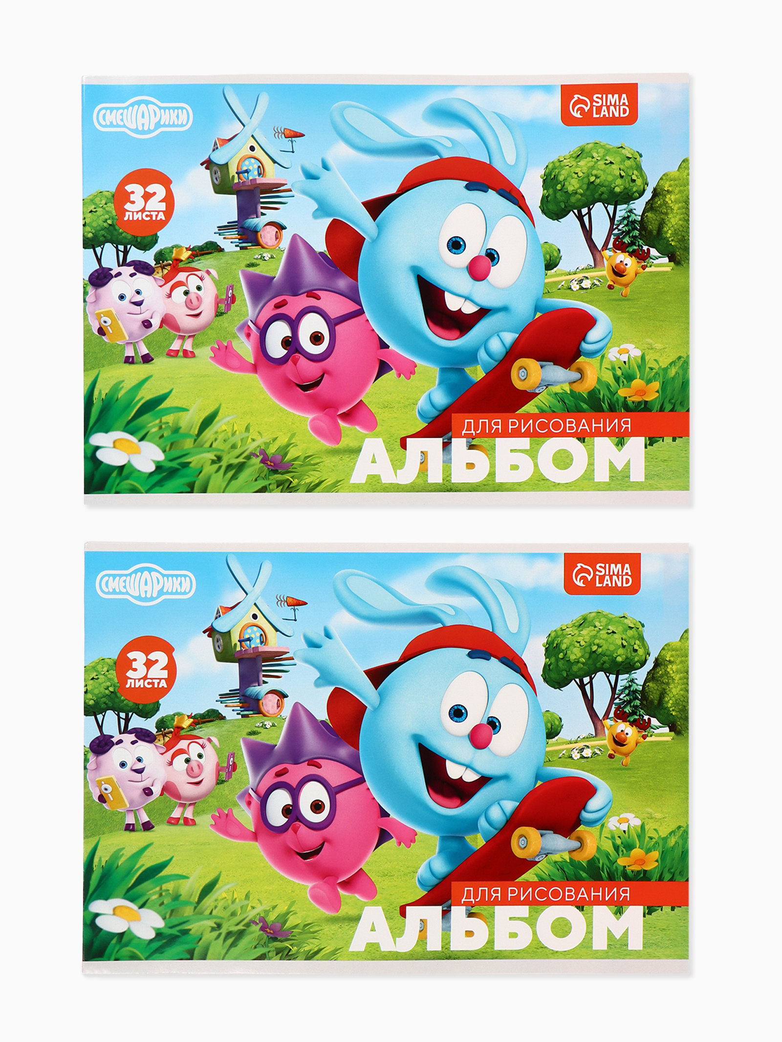 Альбом для рисования на скрепке, А4, 2 штуки, Смешарики, Россия