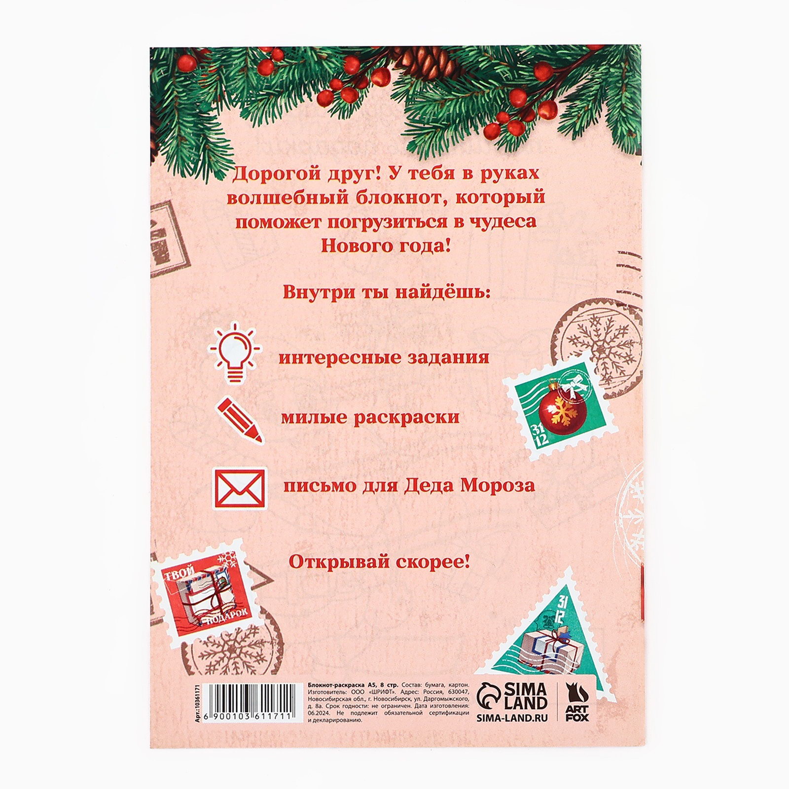 Блокнот детский с раскраской, А5, 8 страниц "Новогодняя почта с Дедом Морозом", ArtFox, Россия