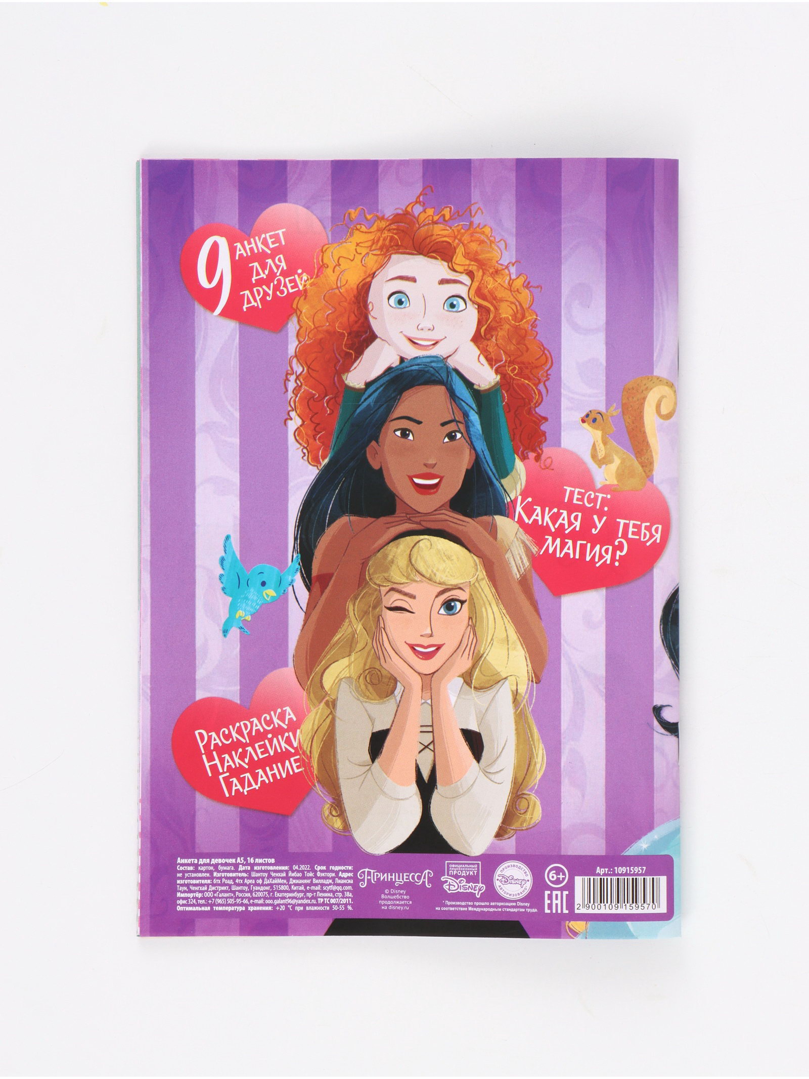 Анкета для девочек "Принцессы" А5, 16 л + наклейки, Disney, Китай