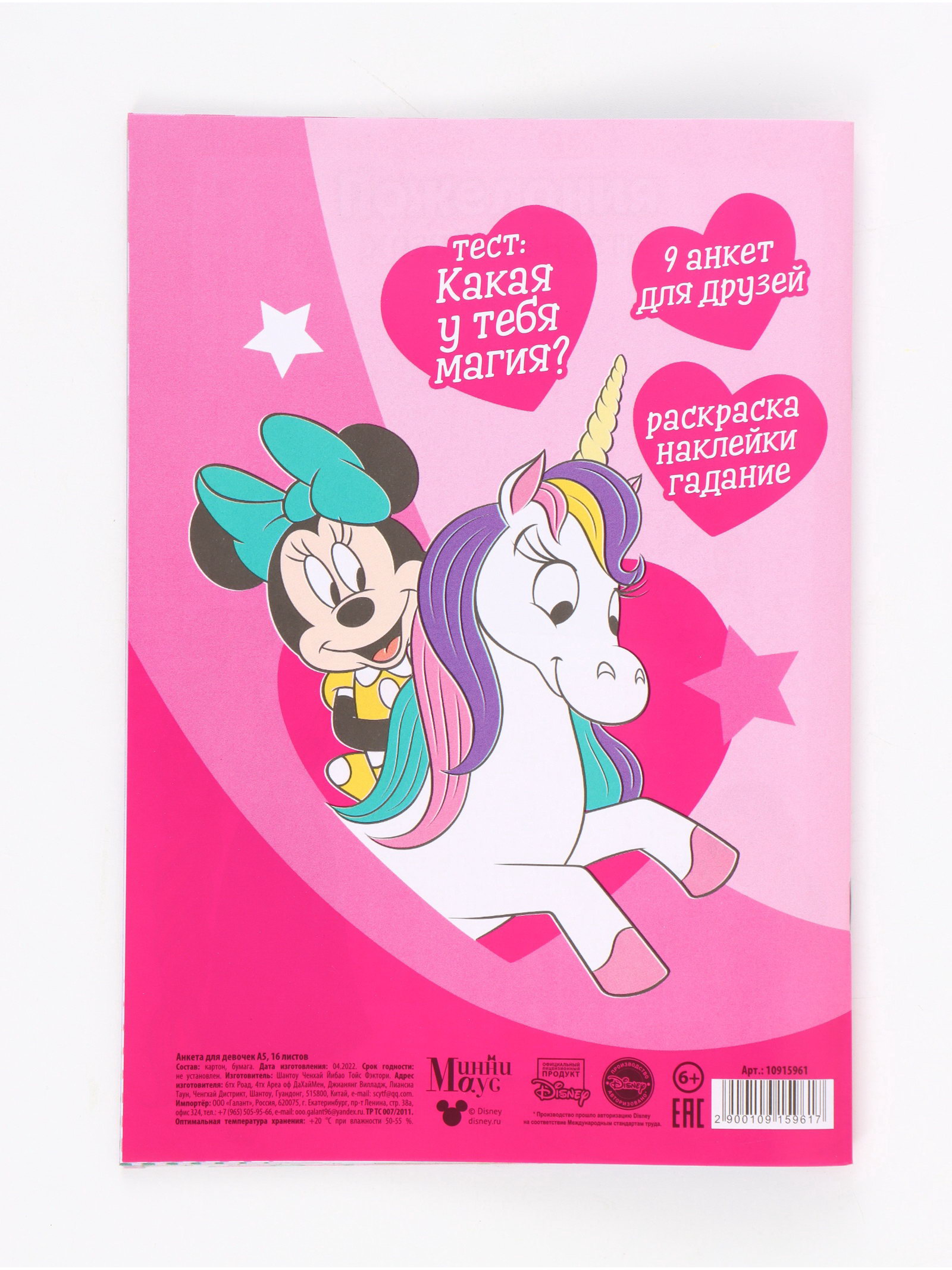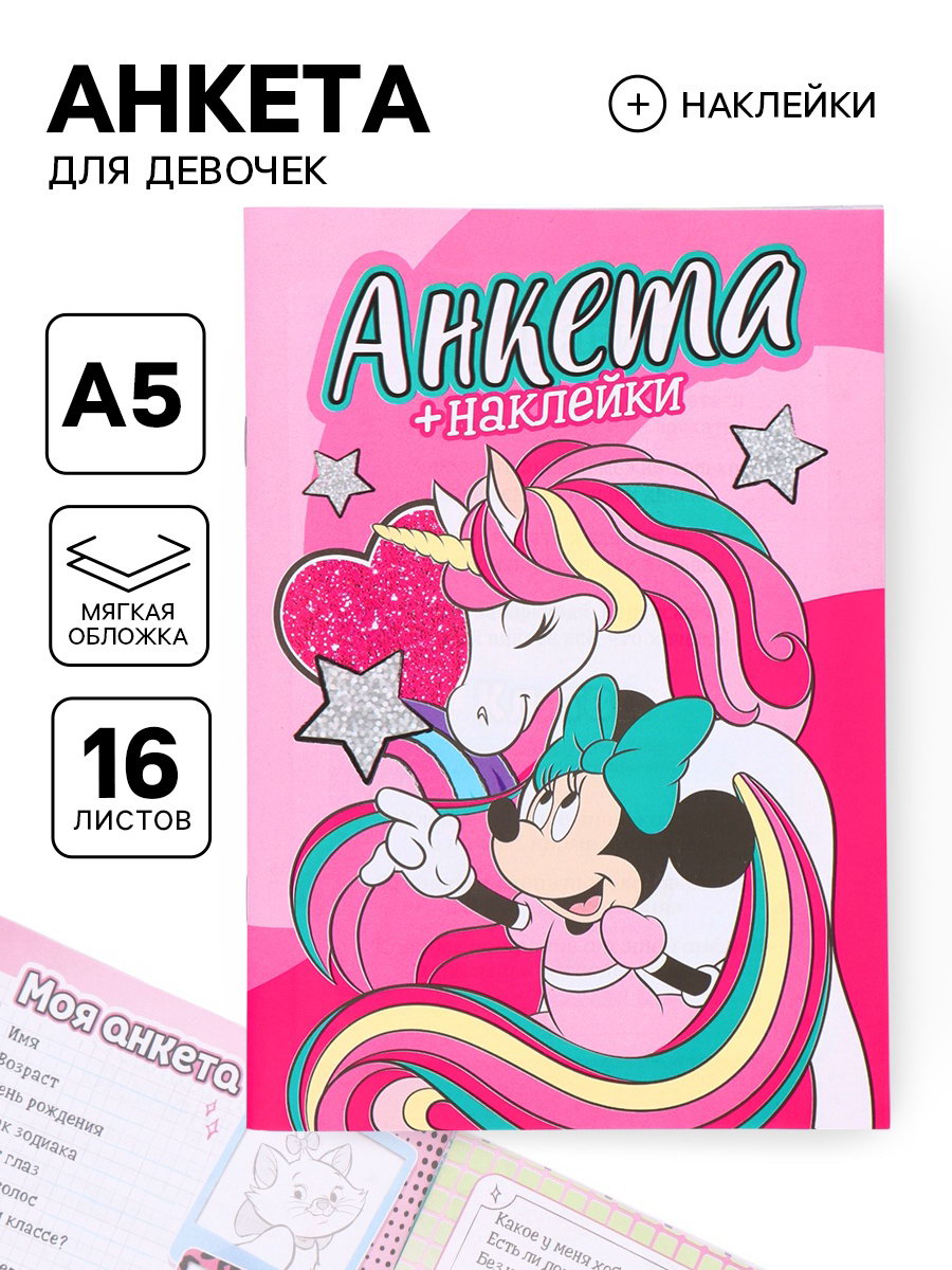 Анкета для девочек "Минни Маус" А5, 16 л + наклейки, Disney, Китай