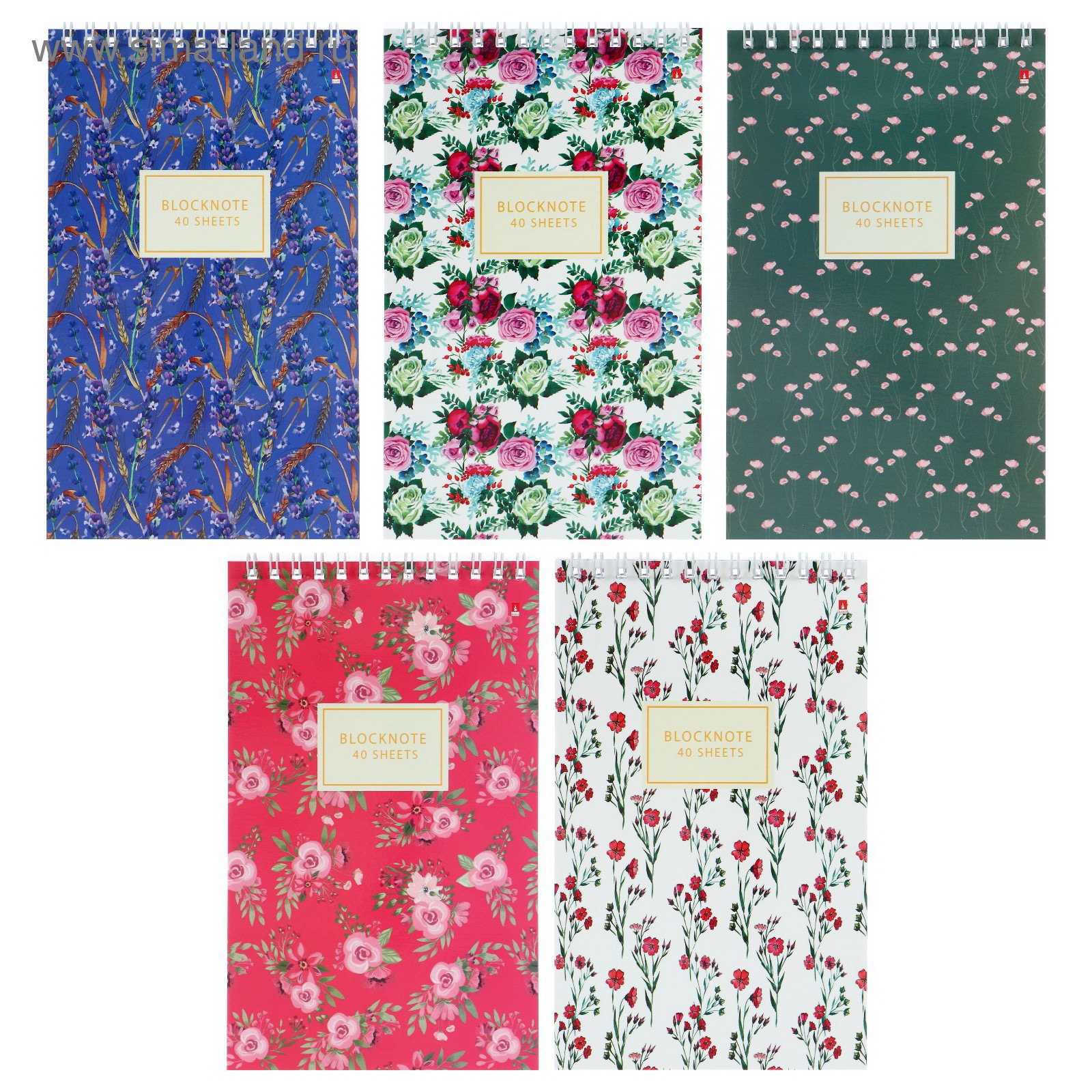 Блокнот А5, 40 листов на гребне "Цветы" Паттерн, обложка ламинированный картон, блок 55 г/?2, МИКС, Альт, Россия