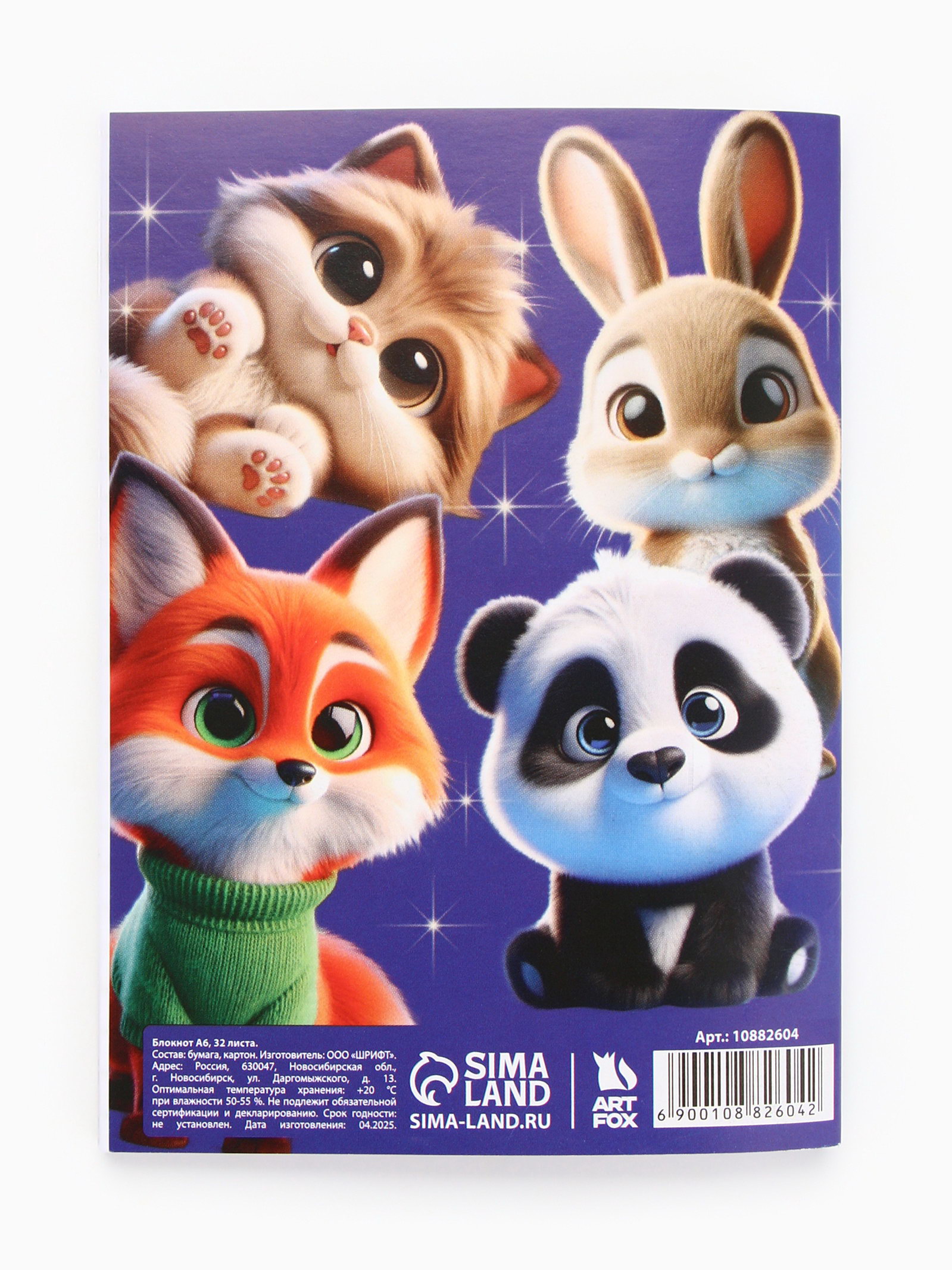 Блокнот А6, 32 л на скрепке, в клетку "Пушистики", ArtFox, Россия