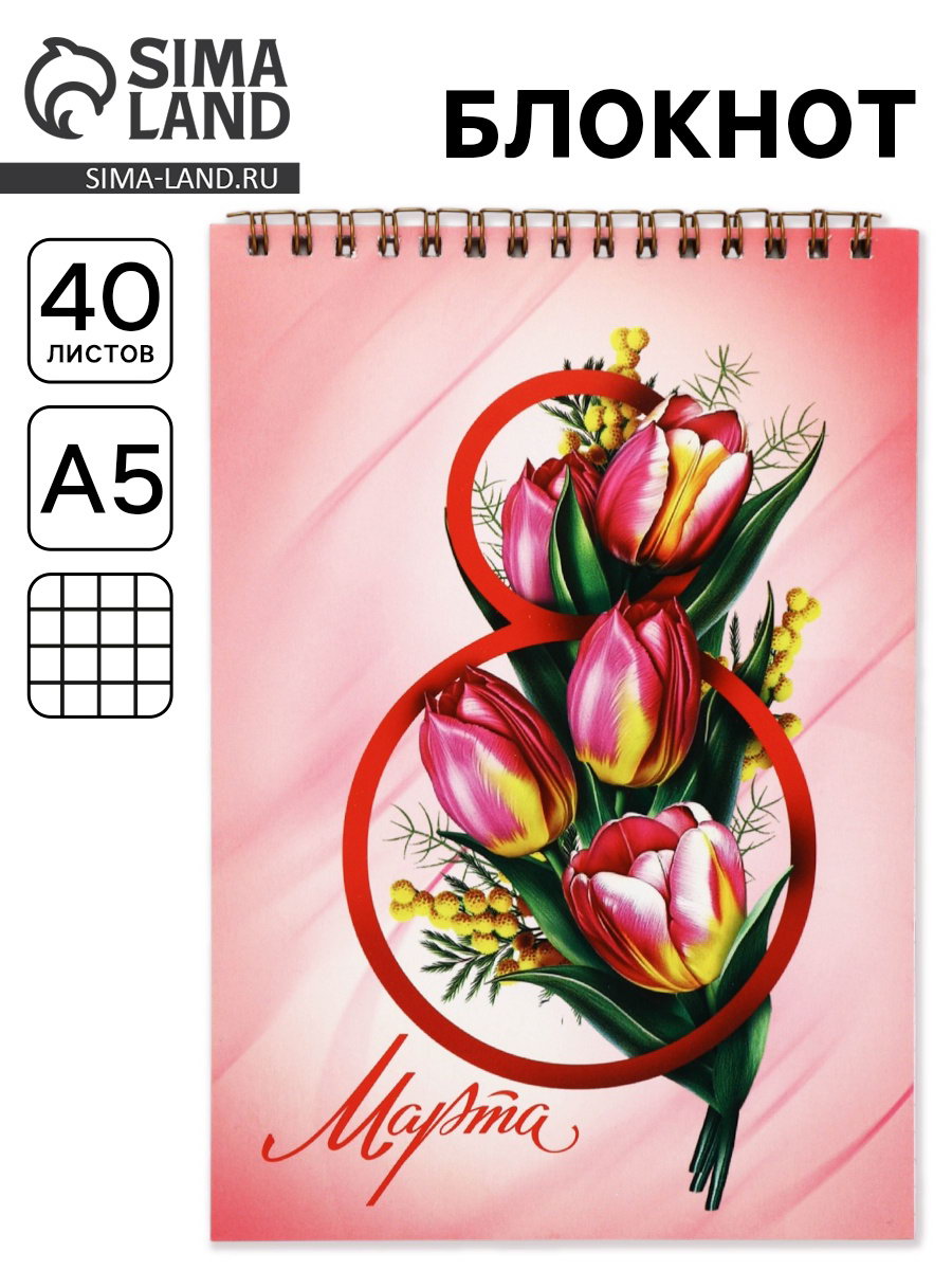 Блокнот А5, 40 л на гребне, обложка картон "8 марта. Тюльпаны", ArtFox, Россия