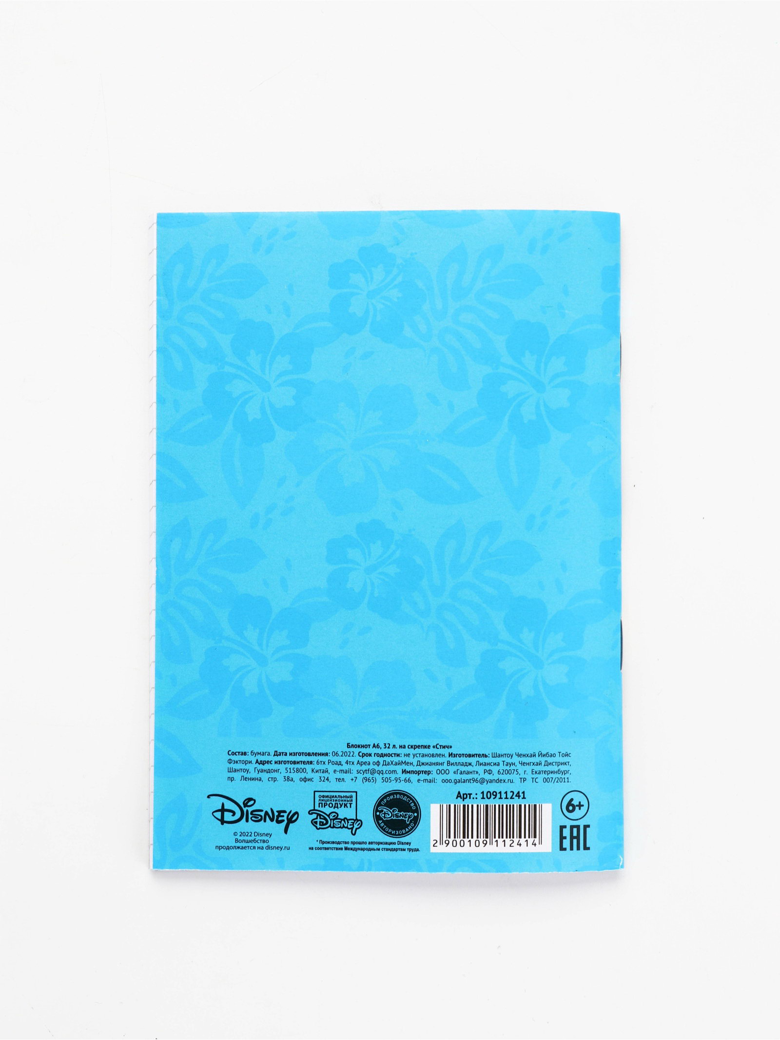 Блокнот А6, 32 л на скрепке, Лило и Стич, Disney, Китай