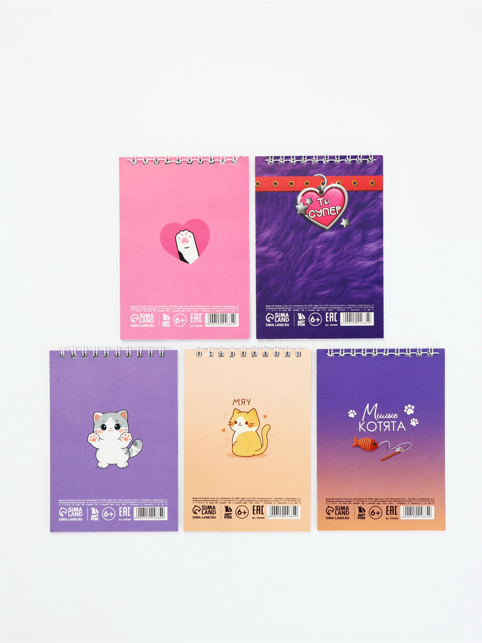 Блокнот А6, 40 л, на гребне "Котики" МИКС, ArtFox, Россия
