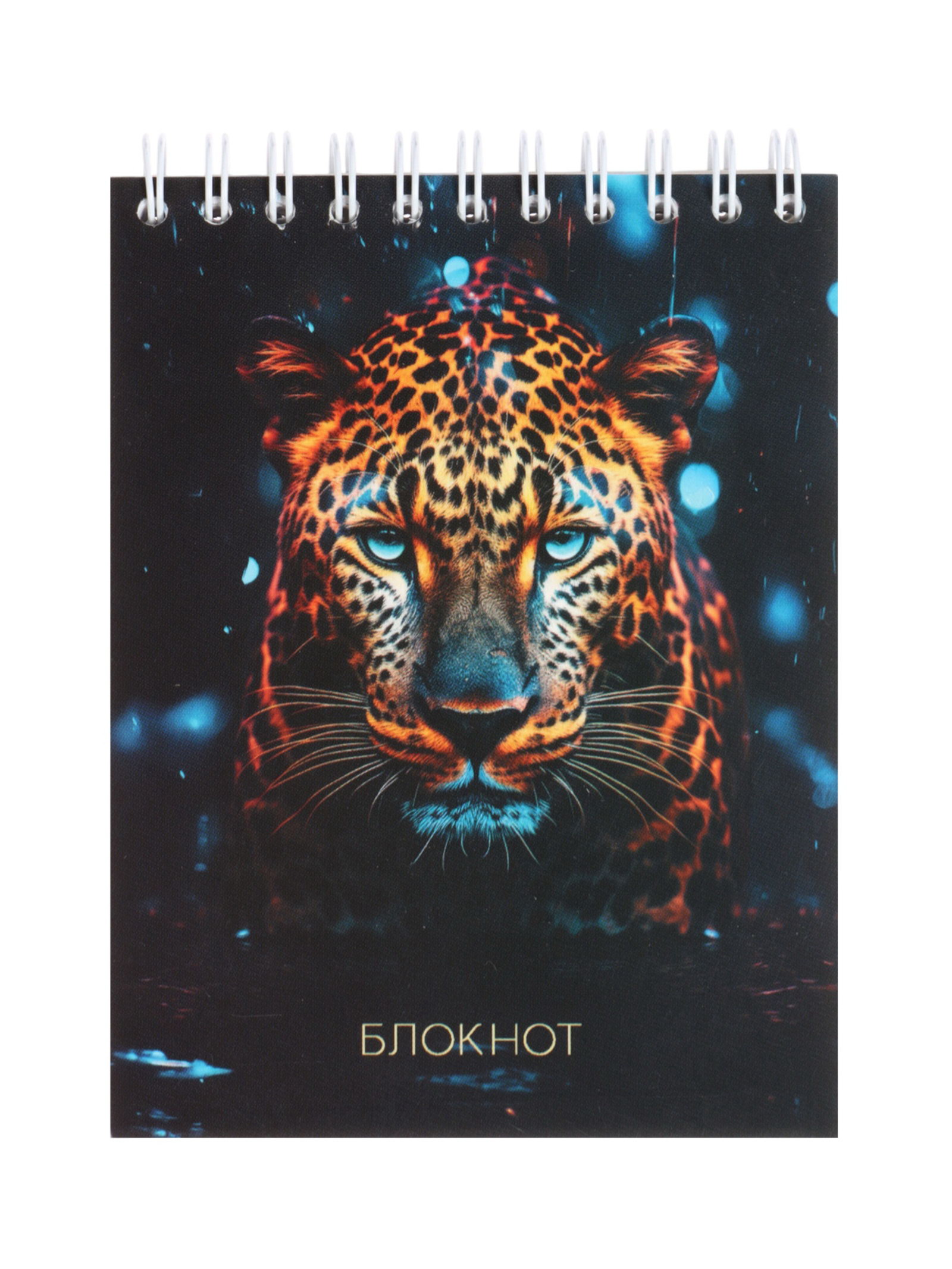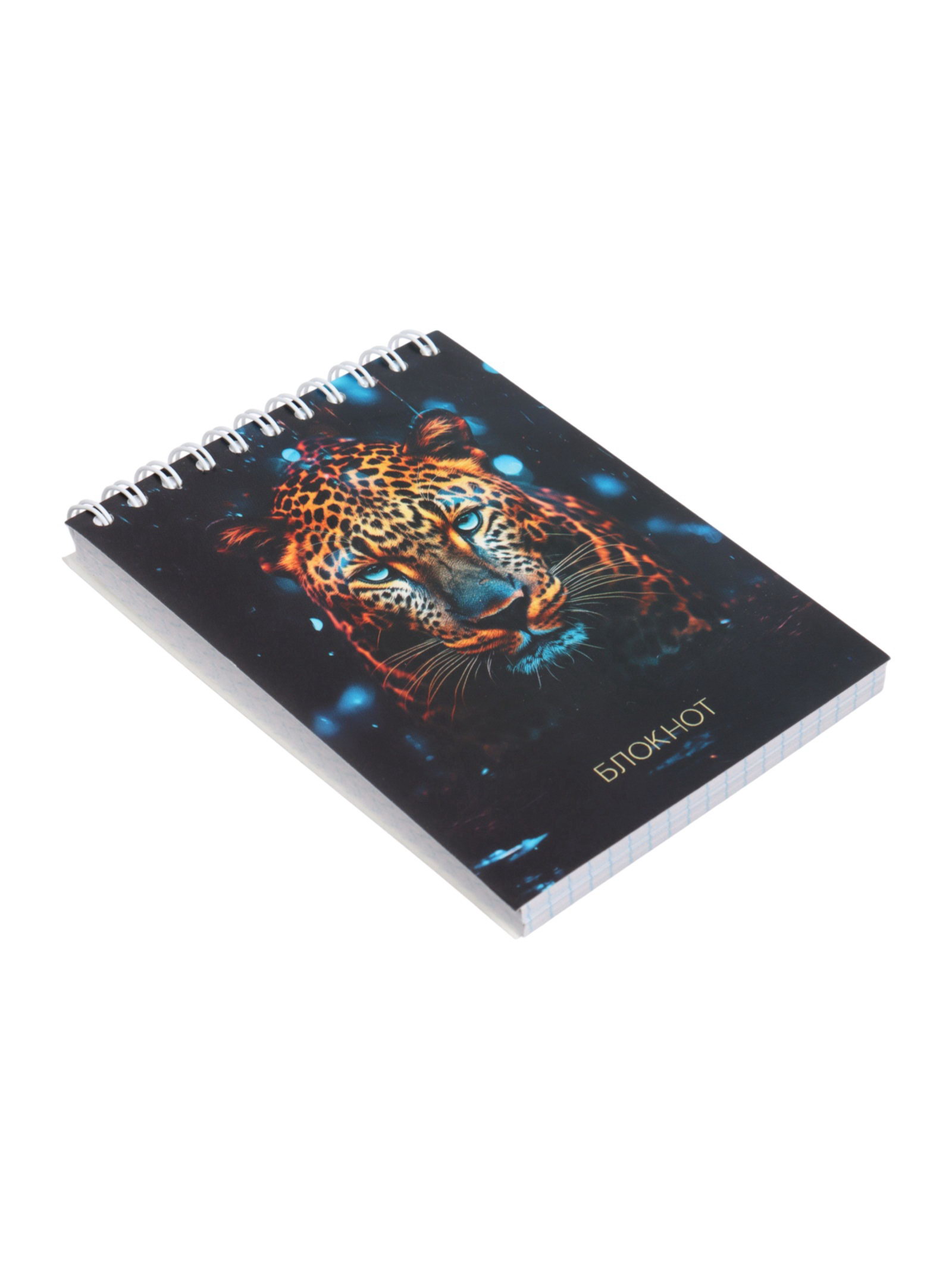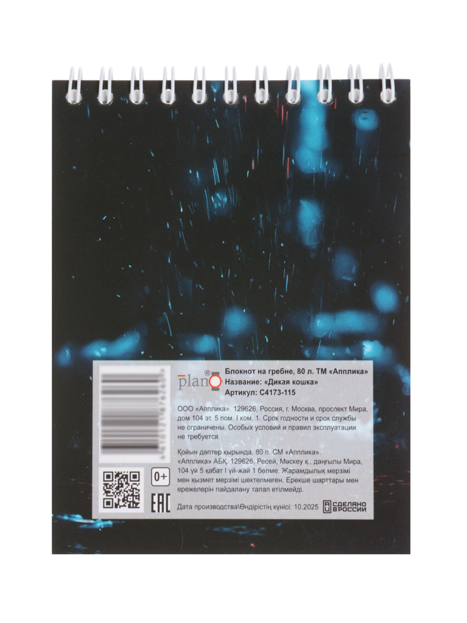 Блокнот на гребне А6 в клетку, 80 листов "Дикая кошка", 60 г/?2, Апплика, Россия