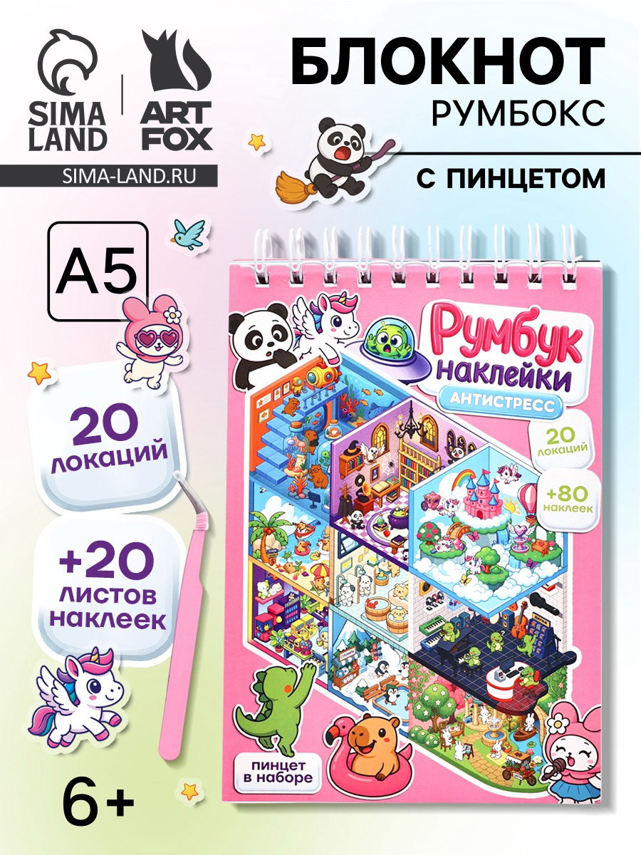 Блокнот-румбокс, А5, локации 20 л, наклейки 20 л, антистресс, 14x20x1 см., ArtFox, Китай