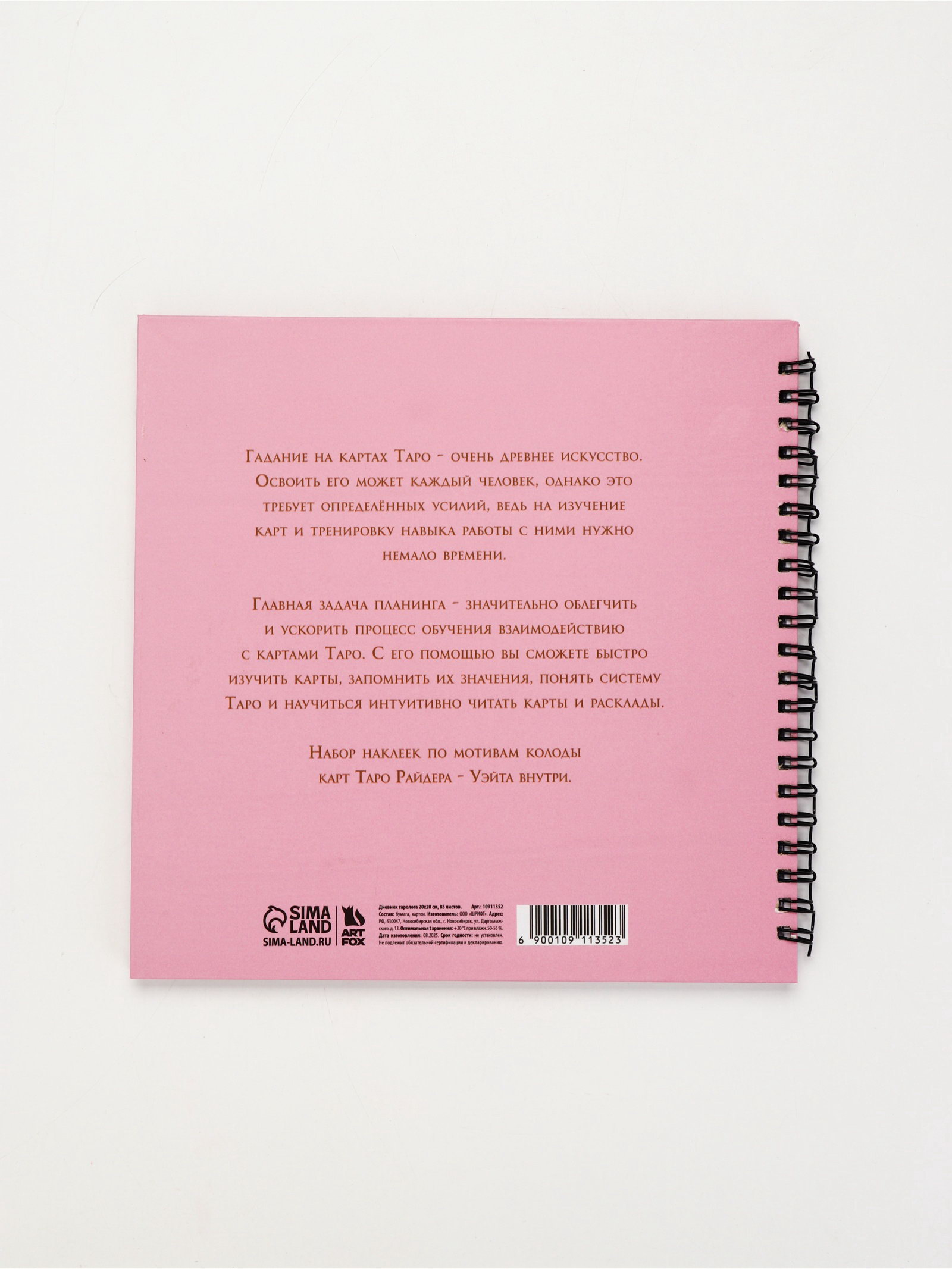 Размер упаковки: 21 x 20 x 2 см. tnved: 4820103000 Вид обложки: Твёрдая Материал обложки: Картон 7БЦ Формат: Квадрат Количество листов: 85 Гадание на картах Таро очень древнее искусство доступное каждому. Однако для его освоения потребуются усилия: изучение карт и отработка навыков работы с ними занимают значительное время. Основная цель планинга упростить и ускорить процесс знакомства с картами Таро. С его помощью вы: