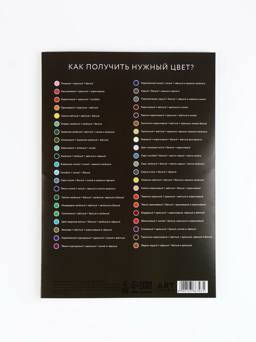 Бумага А4 для акварели, 20 листов, 200 г/?2 "Мона Лиза", ARTLAVKA, Россия
