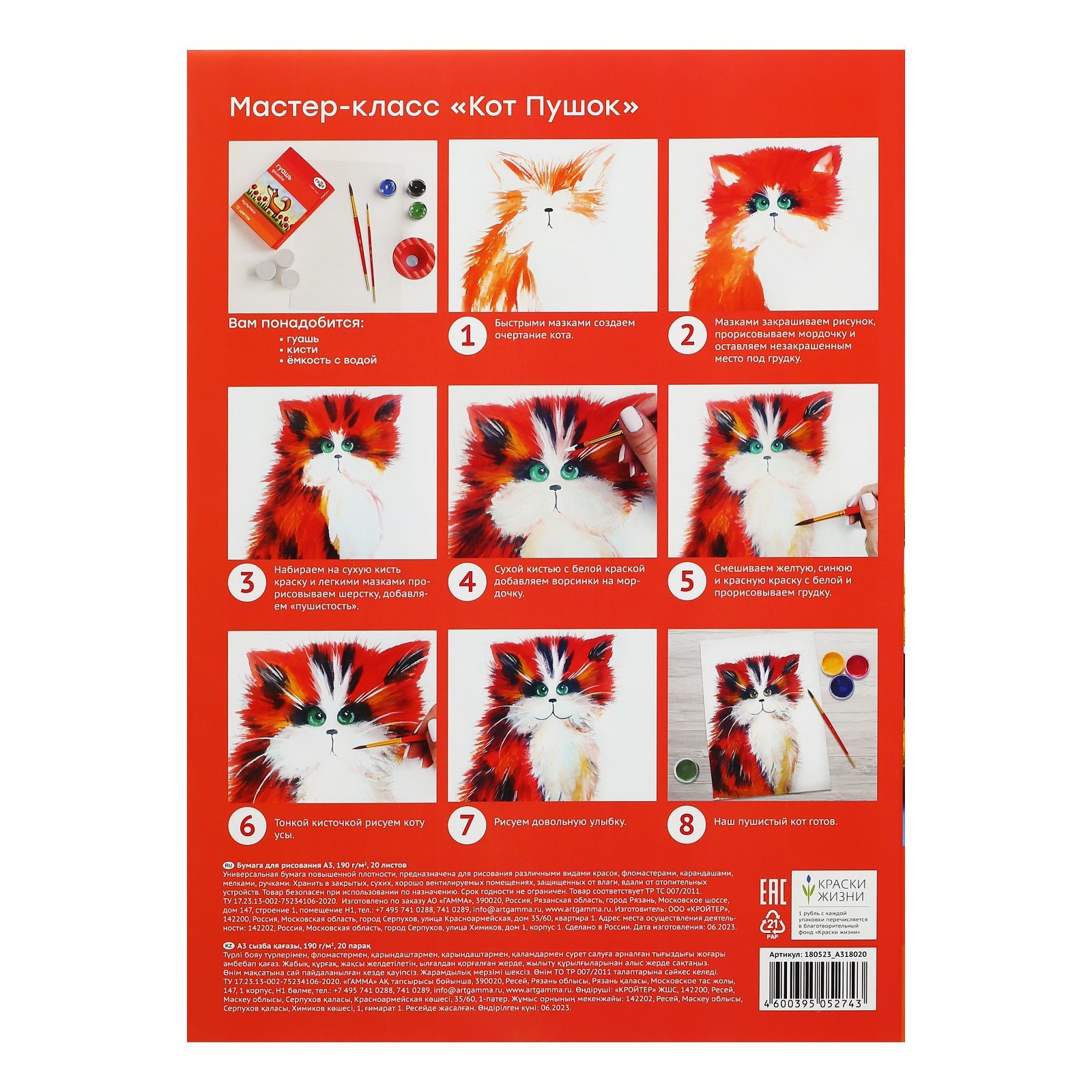 Размер упаковки: 30.5 x 0.5 x 42.5 см. Реестр Минпромторга: Нет tnved: 4802562000 Температурное ограничение: Нет Количество листов: 20 Формат: А3 Цвет: Белый Плотность, г/?2: 190 Фактура бумаги: Гладкая (Satin) Особенность: Офсет Бумага для рисования ГАММА серии "Мультики" повышенной плотности 190 г/м2 отлично подойдет ребенку реализовывать свои фантазии не только карандашами и фломастерами, но и водорастворимыми красками. Бумага благодаря тому, что изготовлена из 100% целлюлозы полностью безопасна для детей. Для первых шагов в искусстве малышу в подарок на обратной стороне папки мастер-класс по рисованию. | ||