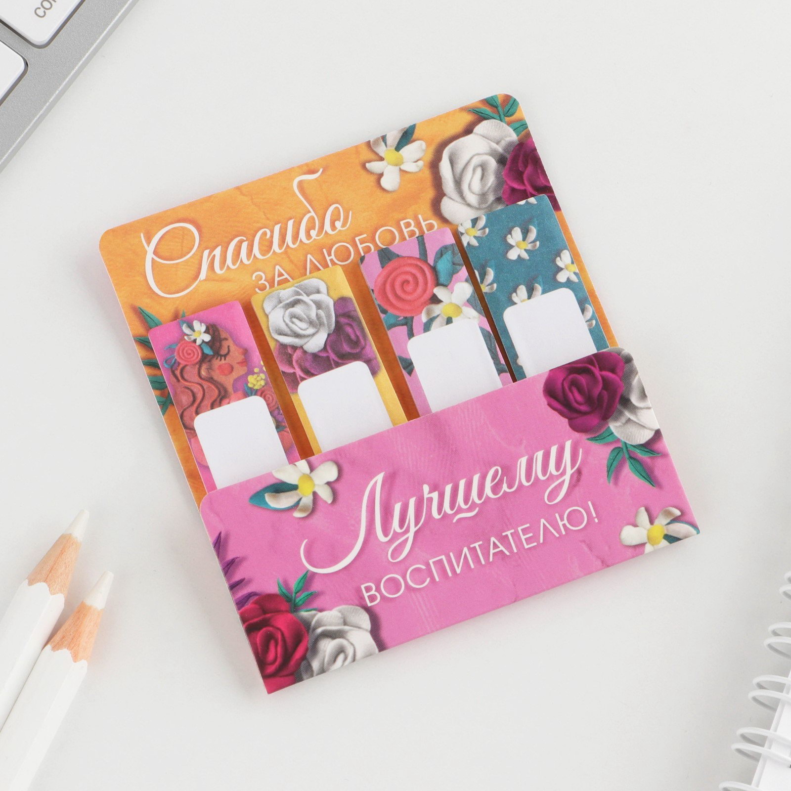 Стикеры для заметок, с липким краем, 20 л, 4 шт. "Лучшему воспитателю", 5.5x8x0.5 см., ArtFox, Китай
