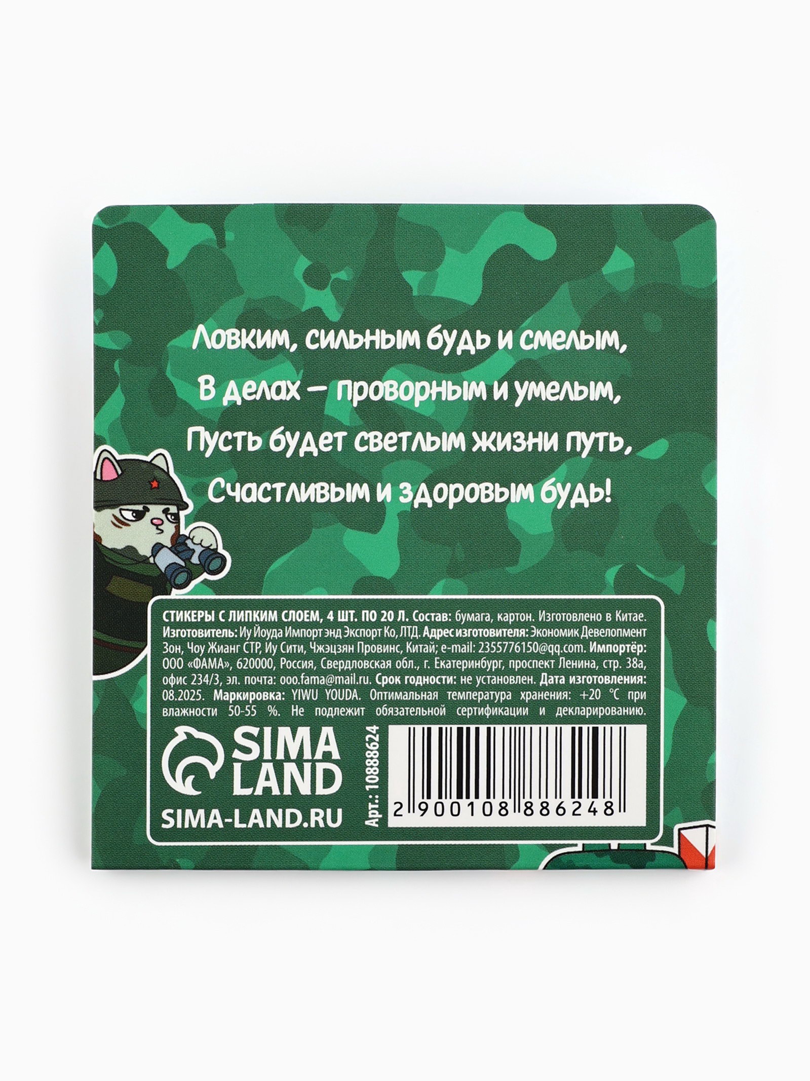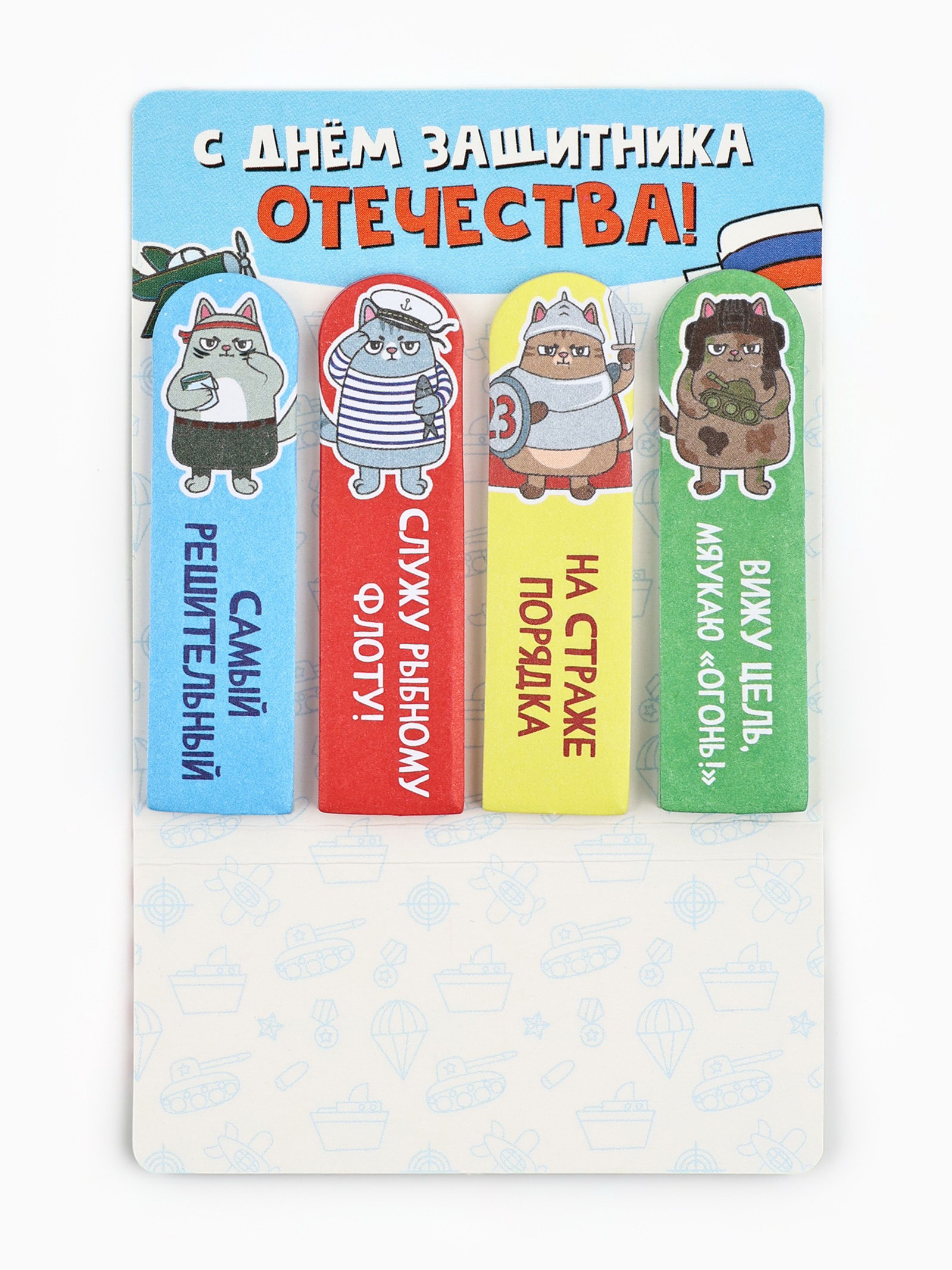 Стикеры-закладки с липким краем 4 шт., 20 л "С днем защитника котечества!", 5.5x8x0.5 см., ArtFox, Китай
