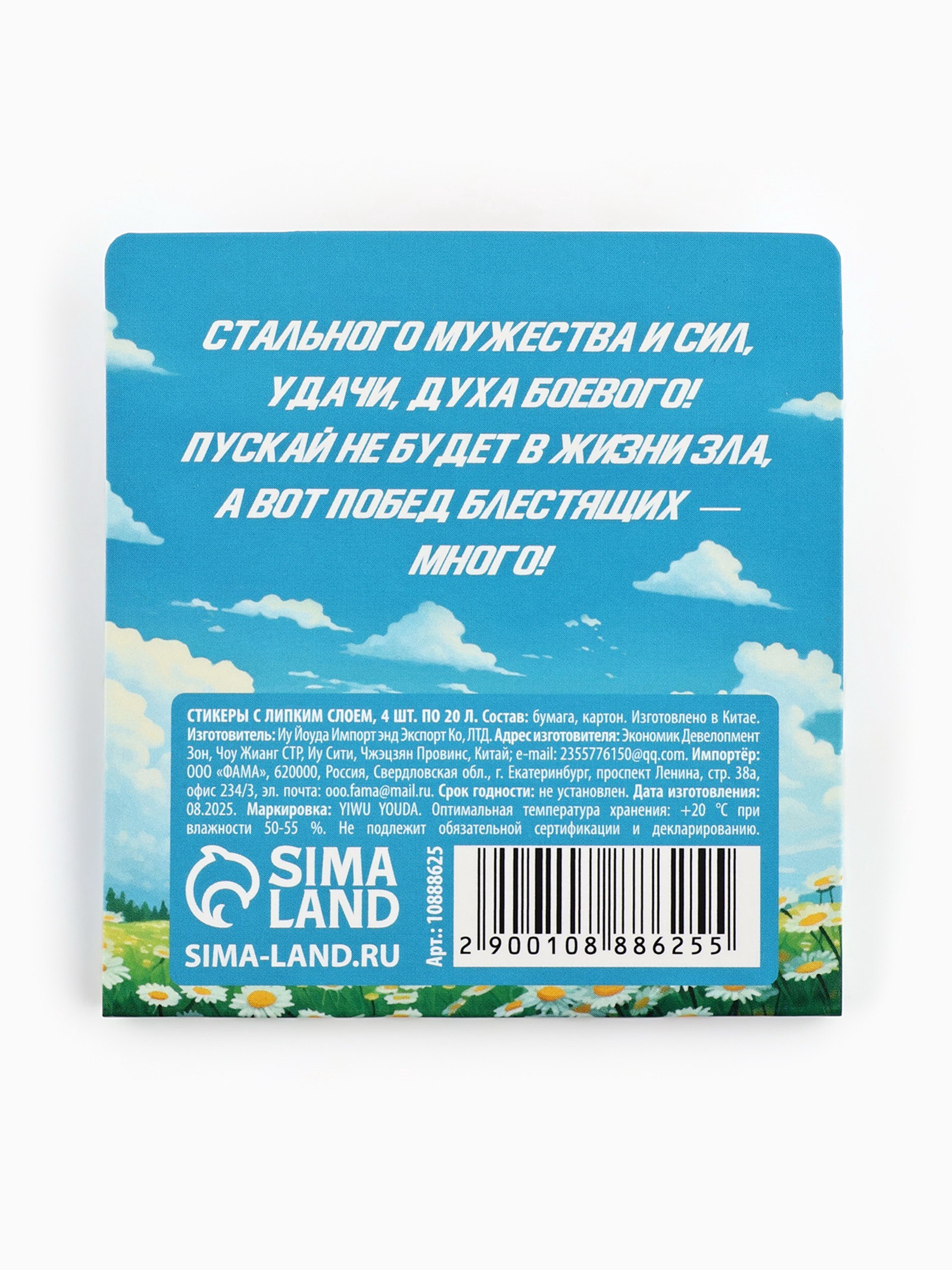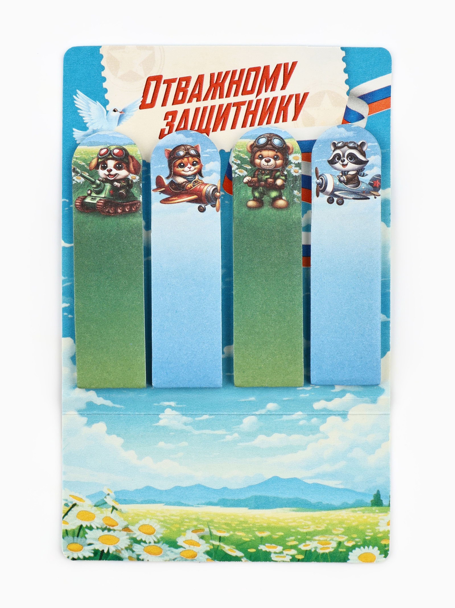 Стикеры-закладки с липким краем 4 шт., 20 л "Отважному защитнику!", 5.5x8x0.5 см., ArtFox, Китай