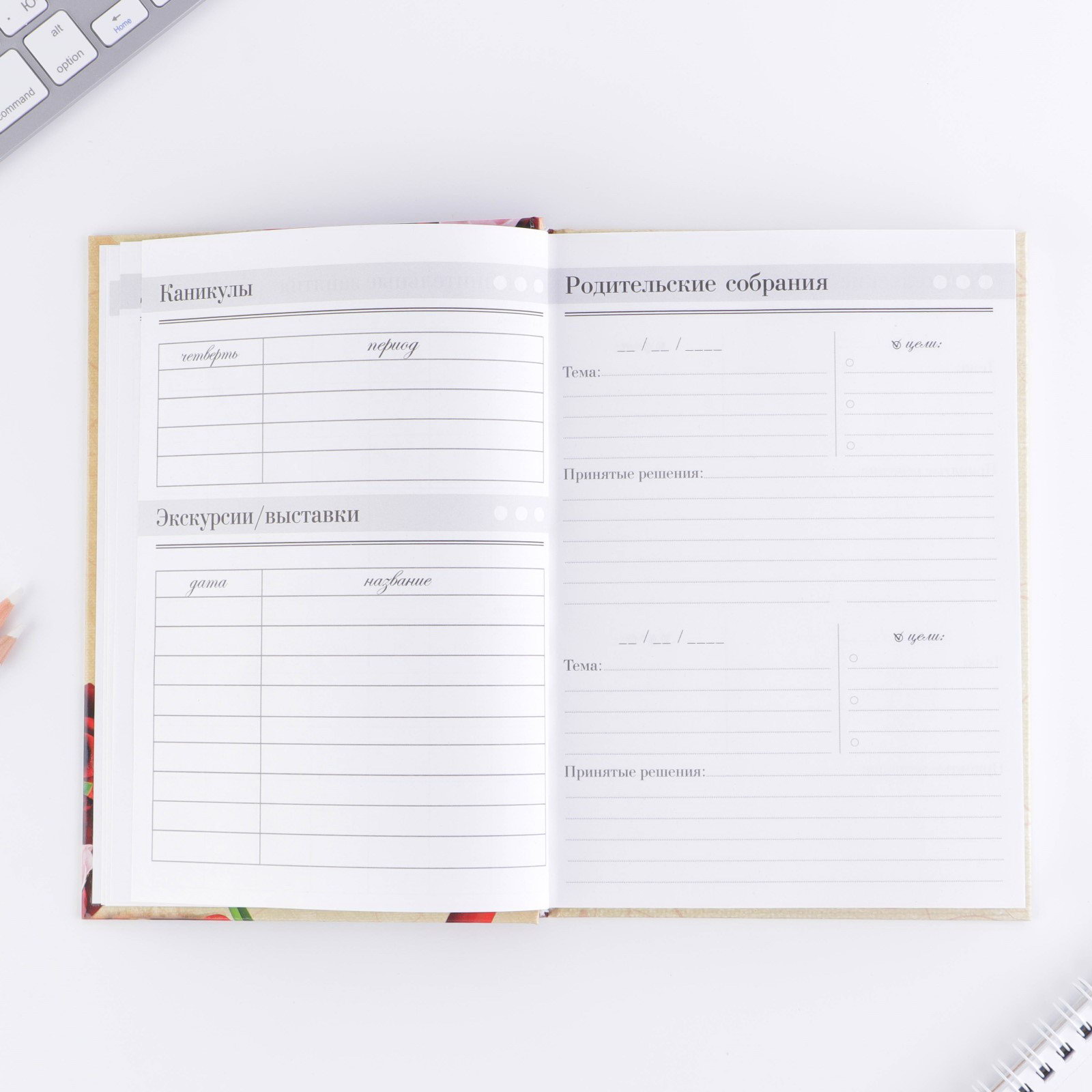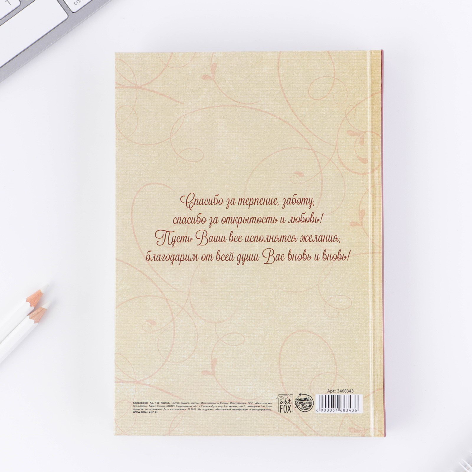 Размер упаковки: 14.5 x 1.5 x 20.5 см. Тип скрепления: Сшивной Количество листов: 160 Формат: А5 Тип ежедневника: Недатированный Тематика праздника: День учителя Материал обложки: Картон 7БЦ Отделка: Без отделки Цвет: Бежевый Для кого: Для женщины Белизна блока, %: 95-100 Вид обложки: Твёрдая Плотность, г/?2: 80 Штрихкод на единице товара: Да tnved: 4820103000 Возраст: Взрослый Рисунок: Да Адресат: Учителю Ежедневник отлично подойдет в качестве подарка. Яркий дизайн несомненно привлечет внимание и будет выделяться , а удобный формат позволит использовать с комфортом. • Пиши • Планируй • Выполняй