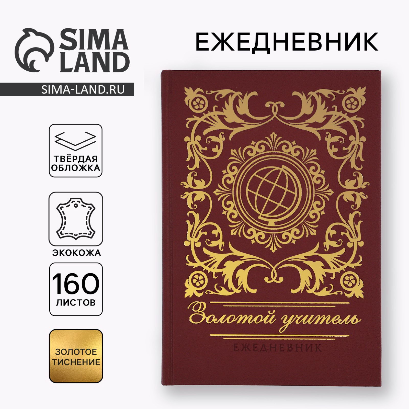 Ежедневник недатированный, А5, 160 л, твёрдая обложка, кожзам "Золотой учитель", ArtFox, Россия