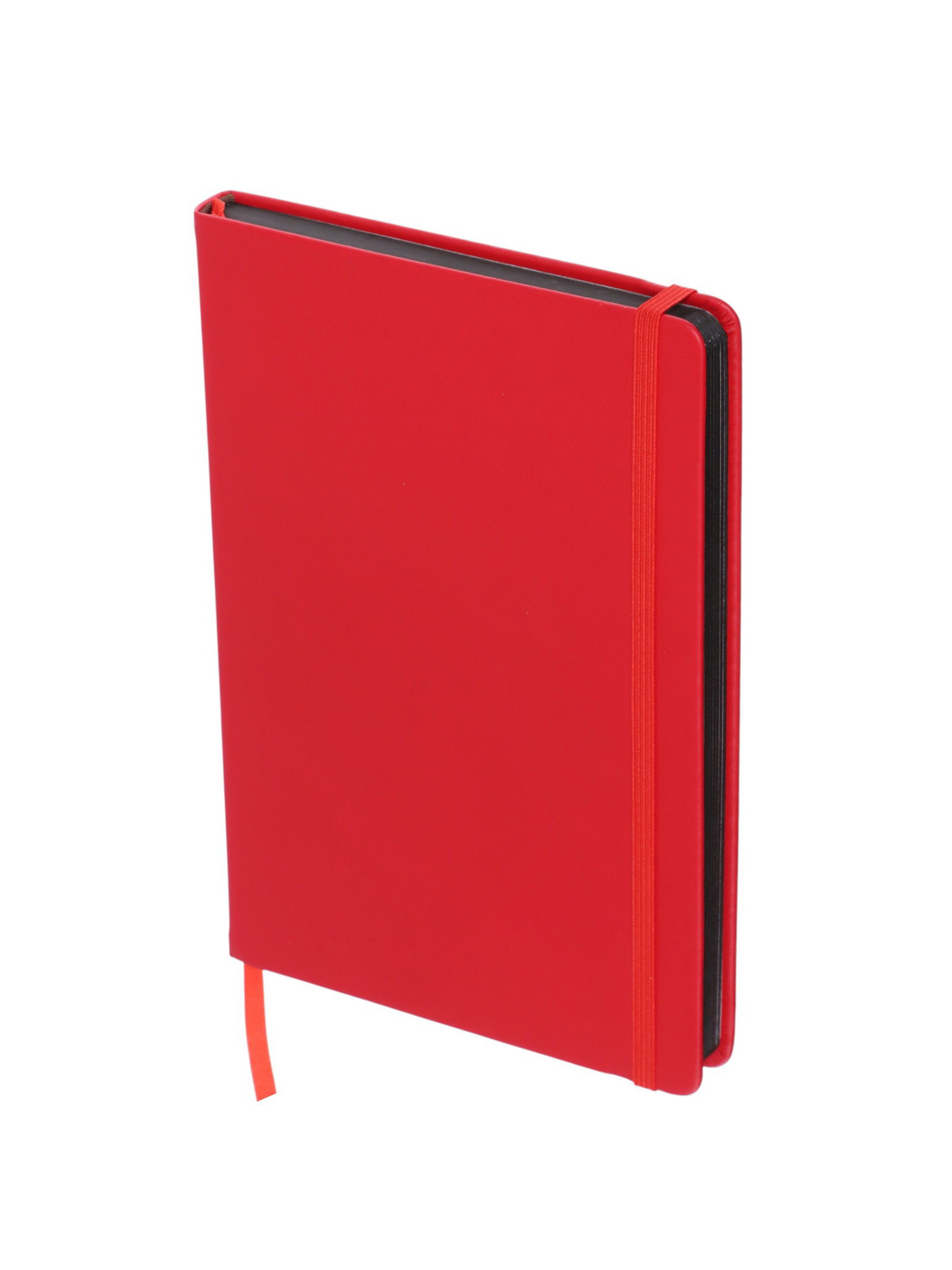 Ежедневник недатированный A5, 140 л, клетка, кожзам, на резинке, черный срез, Красный, 14.5x21.1x2 см., Китай
