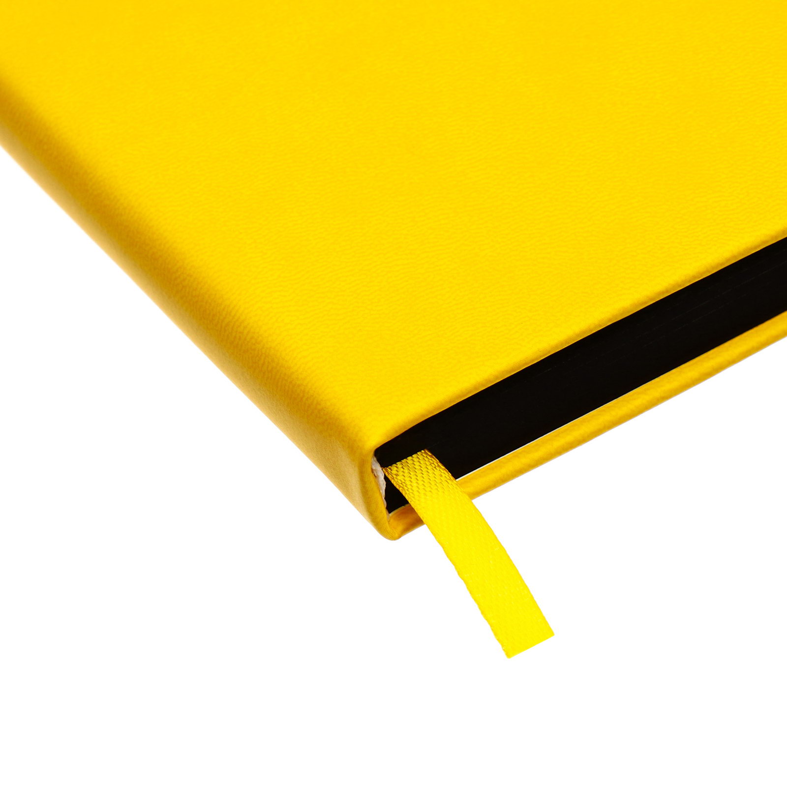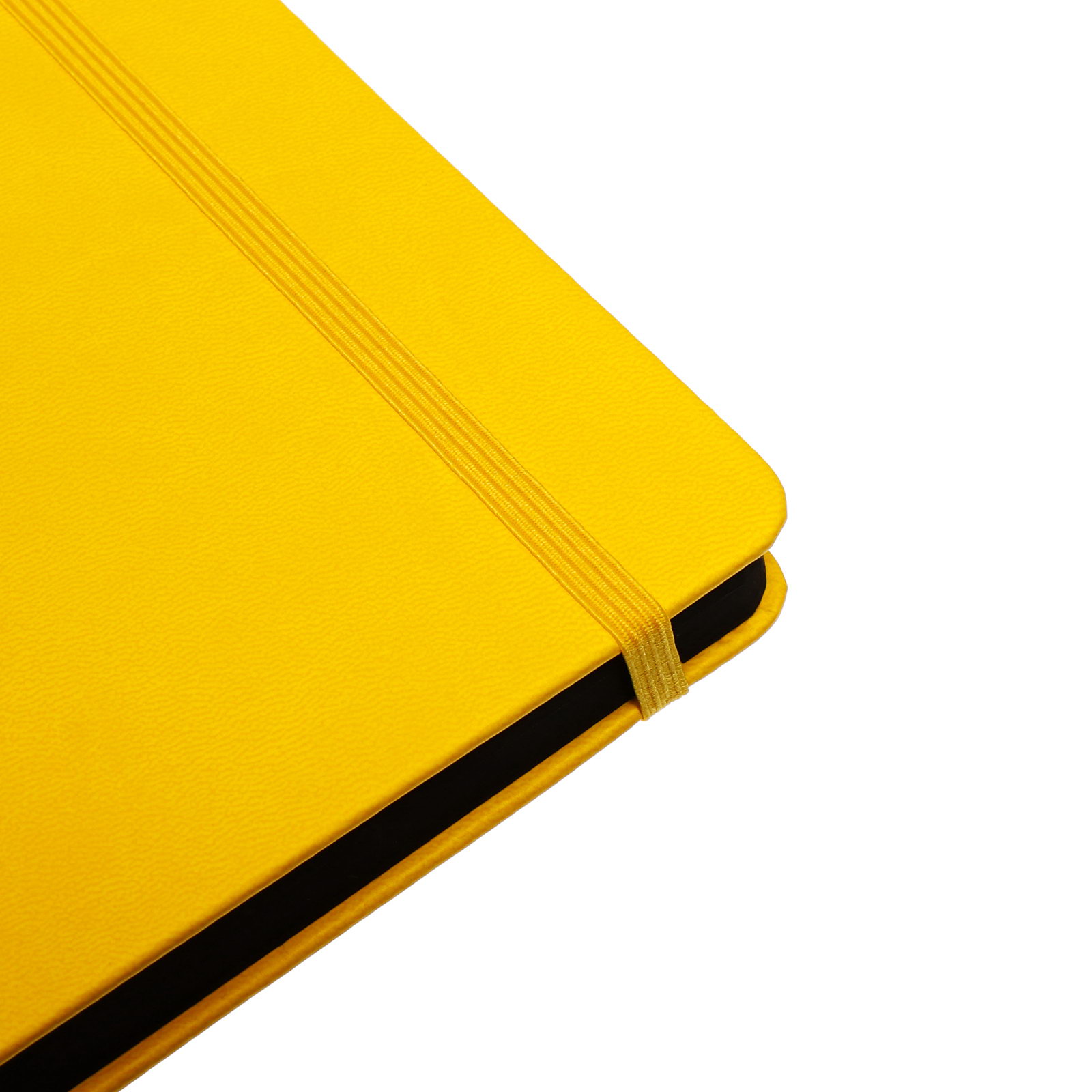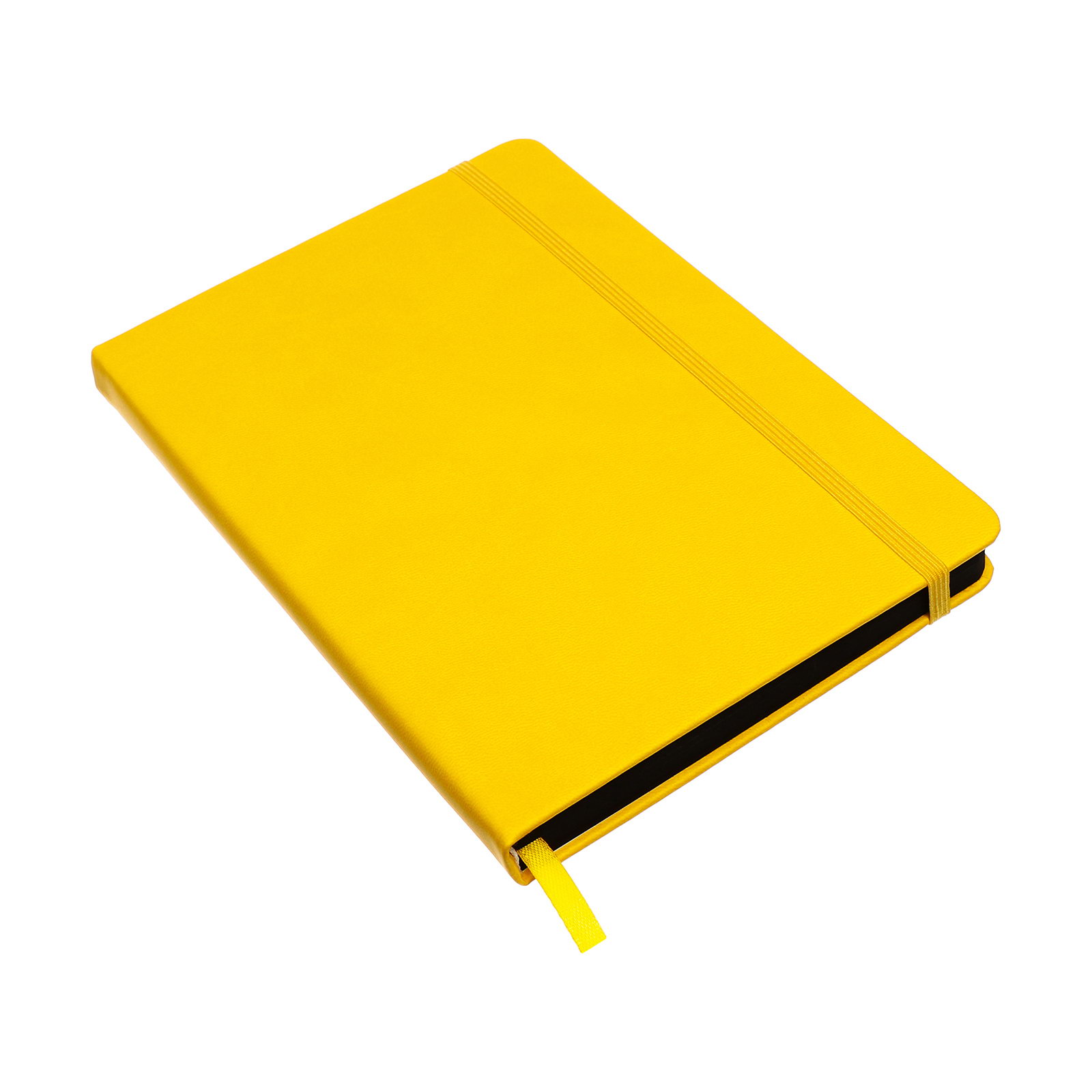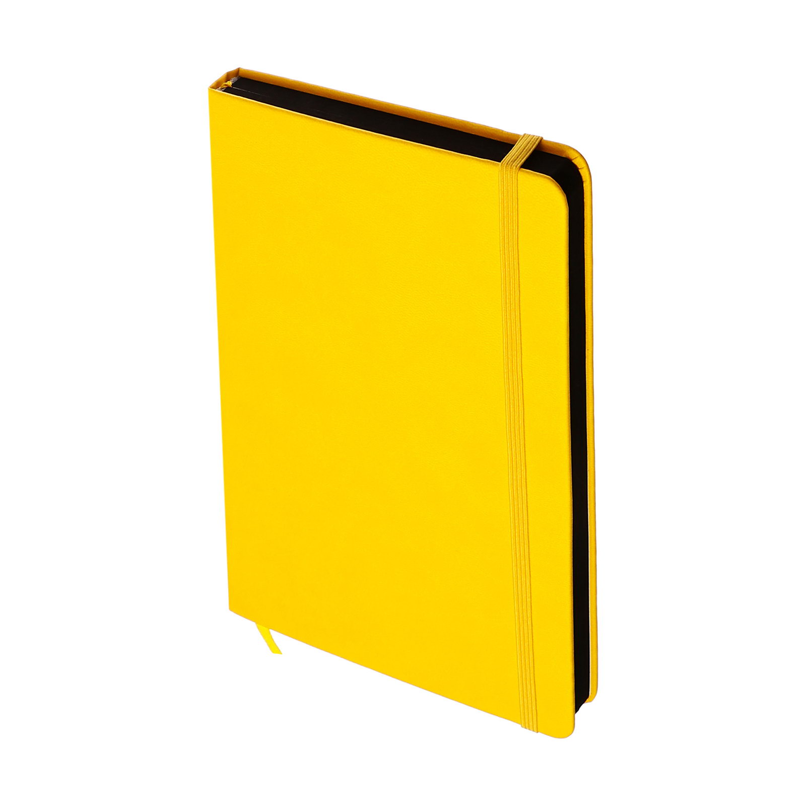 Ежедневник недатированный A5, 140 л, клетка, кожзам, на резинке, черный срез, Желтый, 14.5x21.1x2 см., Китай