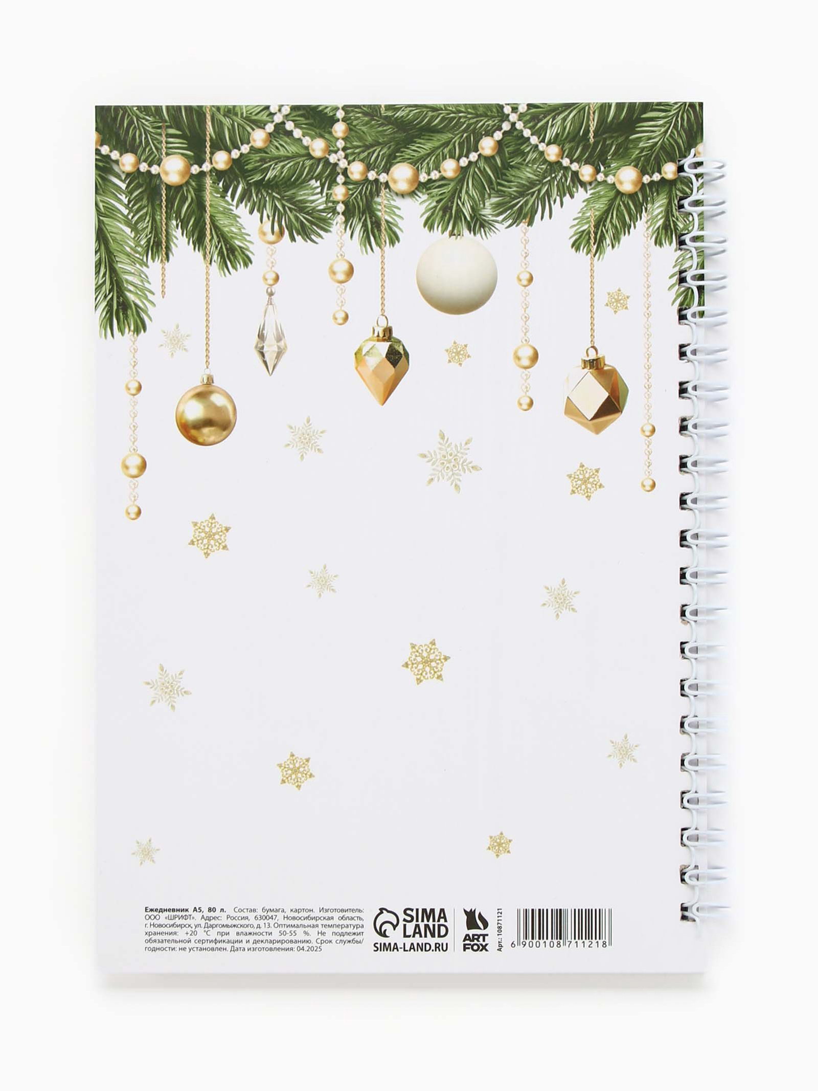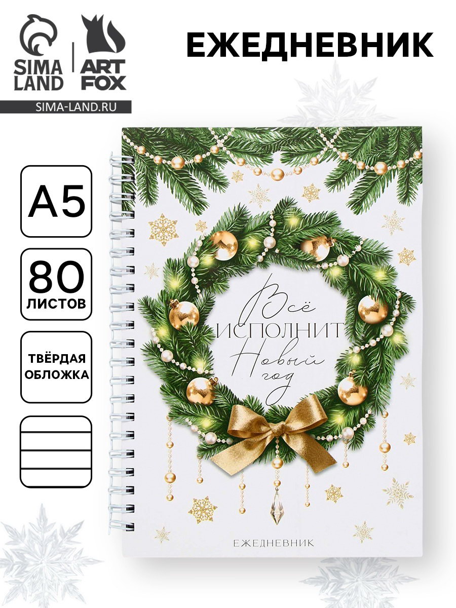 Ежедневник недатированный, А5, 80 л, твёрдая обложка, на гребне "Всё исполнит Новый Год", ArtFox, Россия