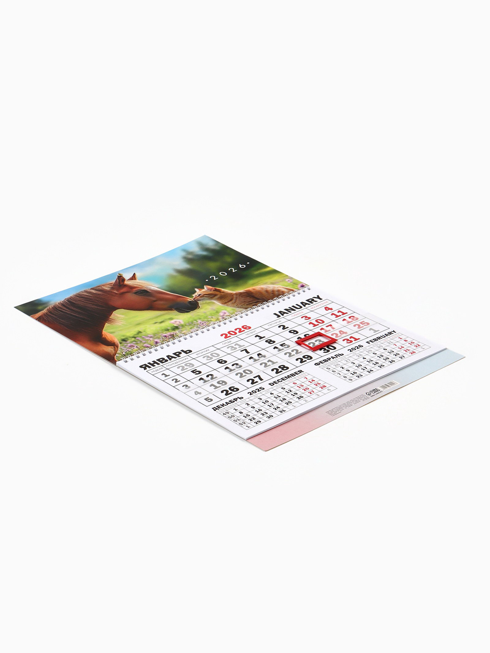Календарь настенный квартальный 2026 "Лошадь с котенком", 30x46 см, Сима-ленд, Россия