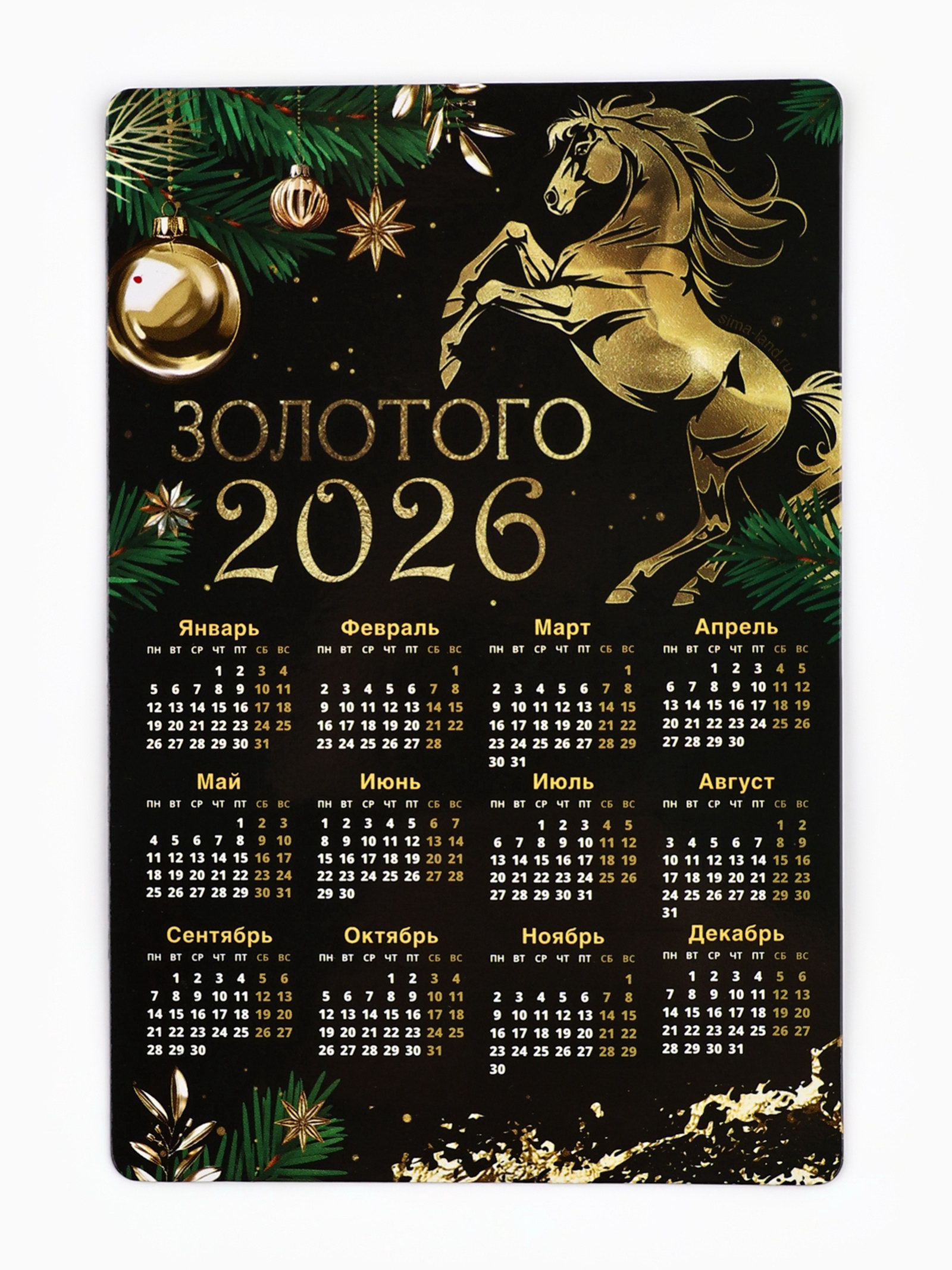 Календарь - магнит "Золотого 2026", 8x12 см, 12x8x0.3 см., Сима-ленд, Китай