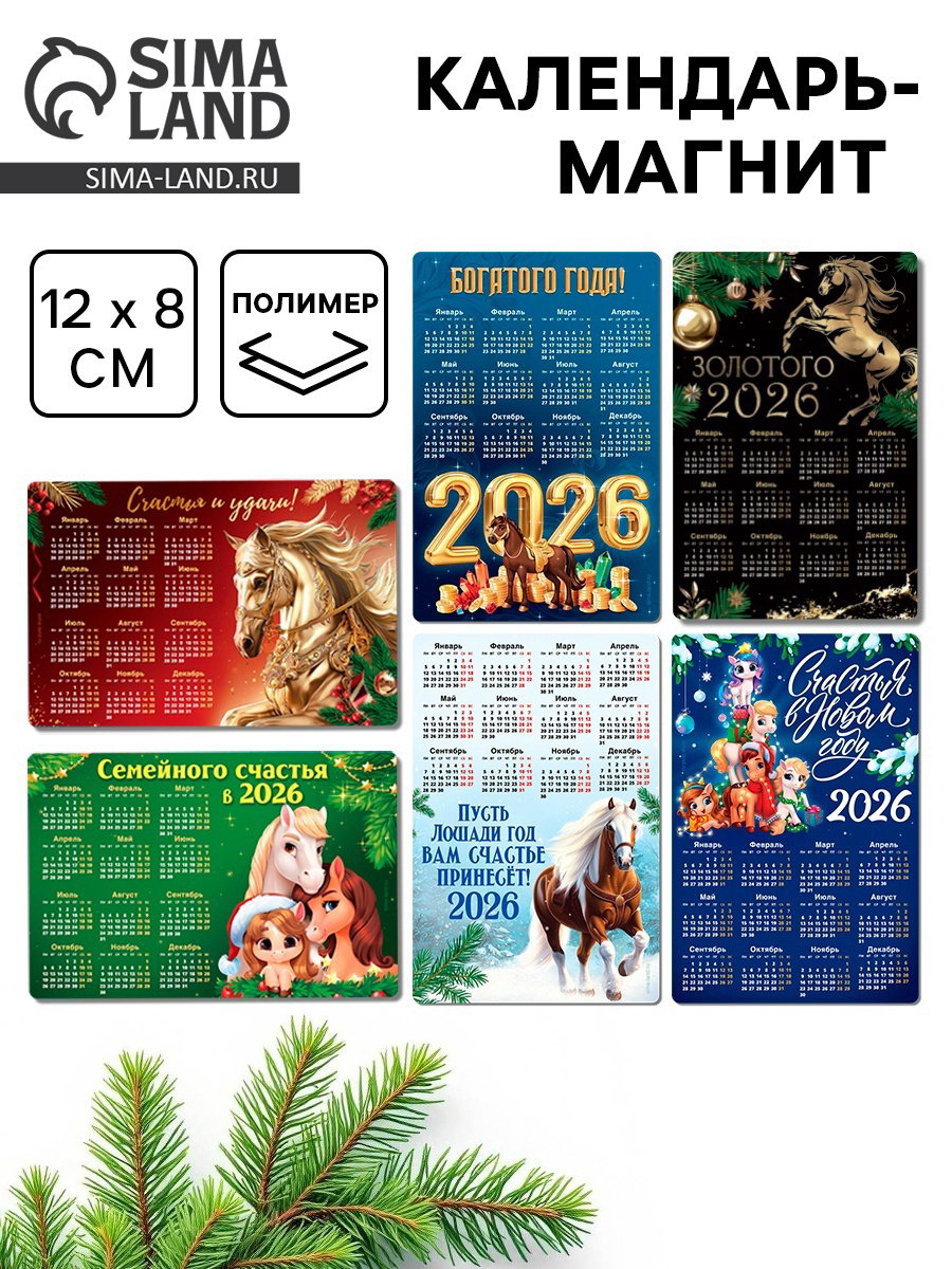 Календарь на магните 2026 "Новогодний", МИКС, 8x12 см, 12x8x0.3 см., Сима-ленд, Китай