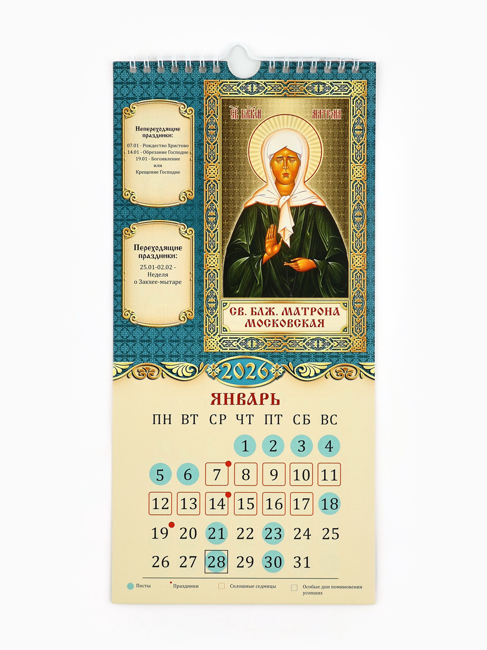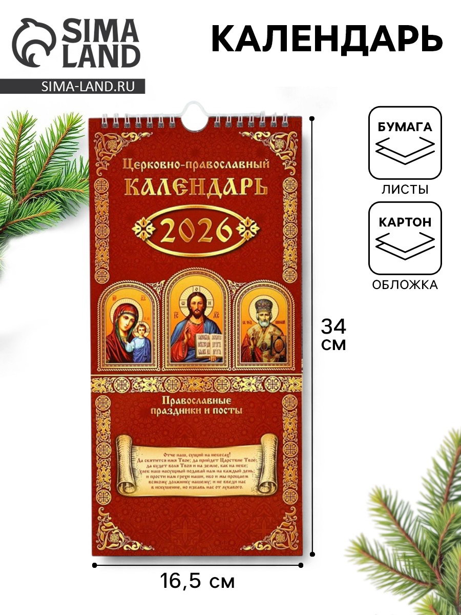 Календарь 2026 на ригеле "Церковно-православный" 16.5x34 см, Сима-ленд, Россия