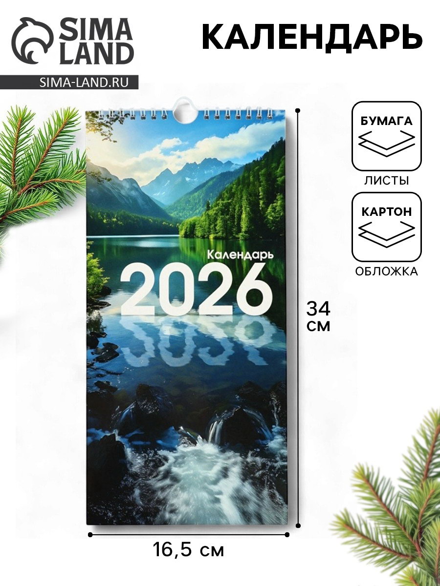 Календарь на ригеле "Природа 2026" 16.5x34 см, Сима-ленд, Россия
