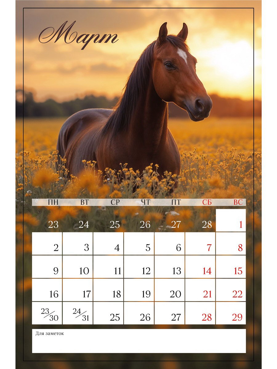 Календарь 2026 на ригеле "Тройка лошадей", Сима-ленд, Россия