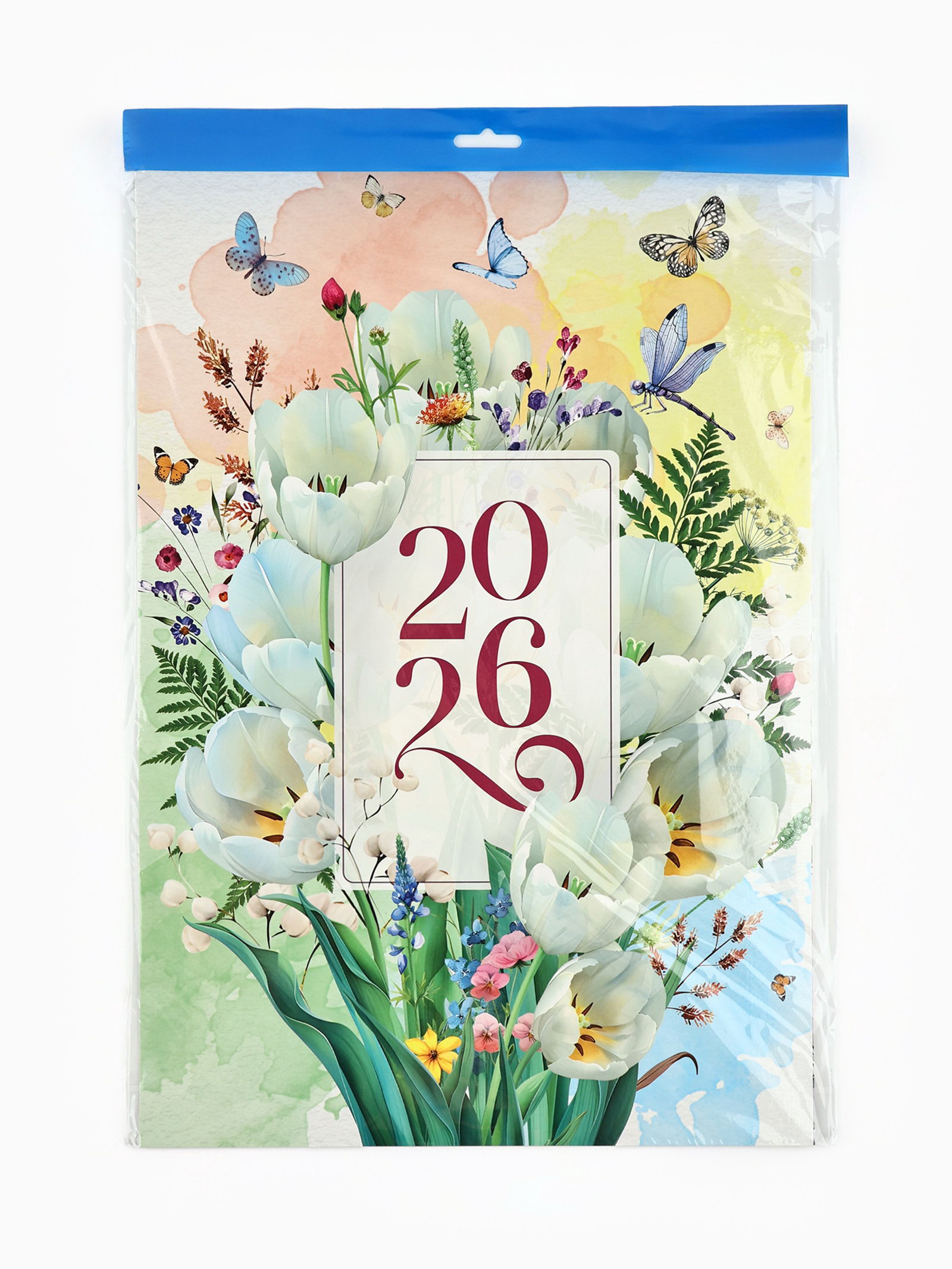 Размер упаковки: 32 x 48 x 0.7 см. tnved: 4820103000 Набор: Нет Тематика праздника: Новый год Вид: Перекидной Формат: А3 Тематика: Цветочно-растительная Символ года: Символ года 2026 (Лошадь) | ||