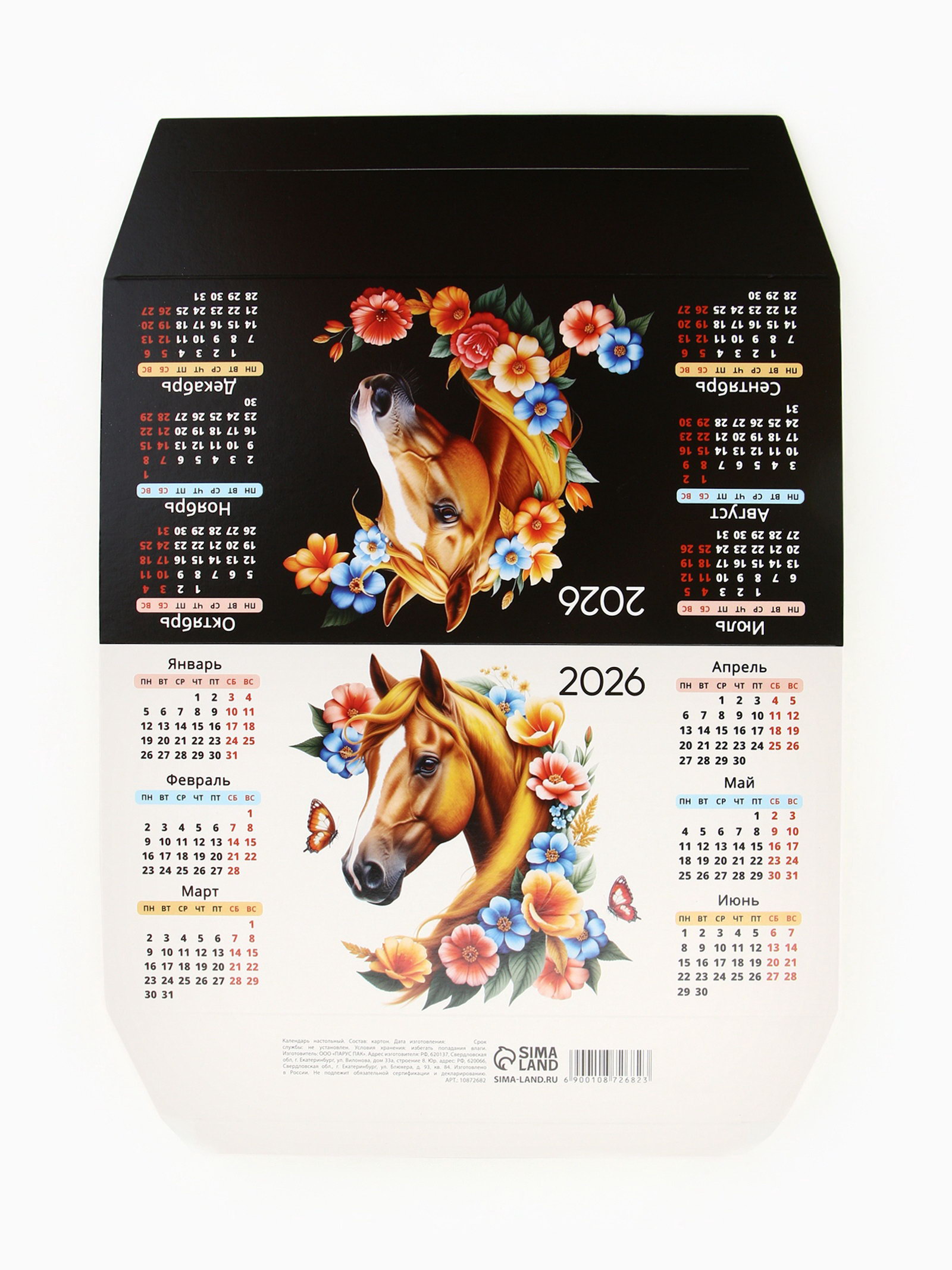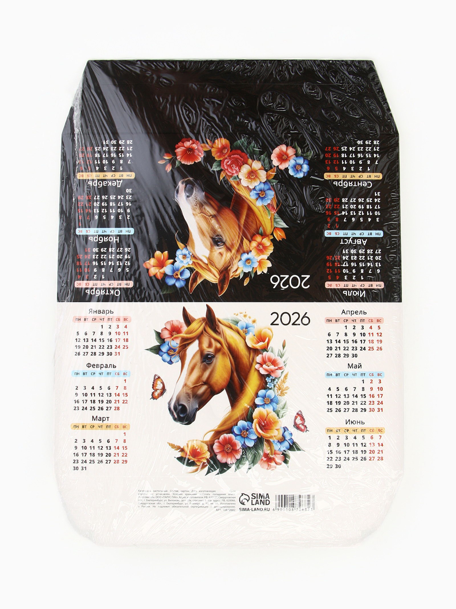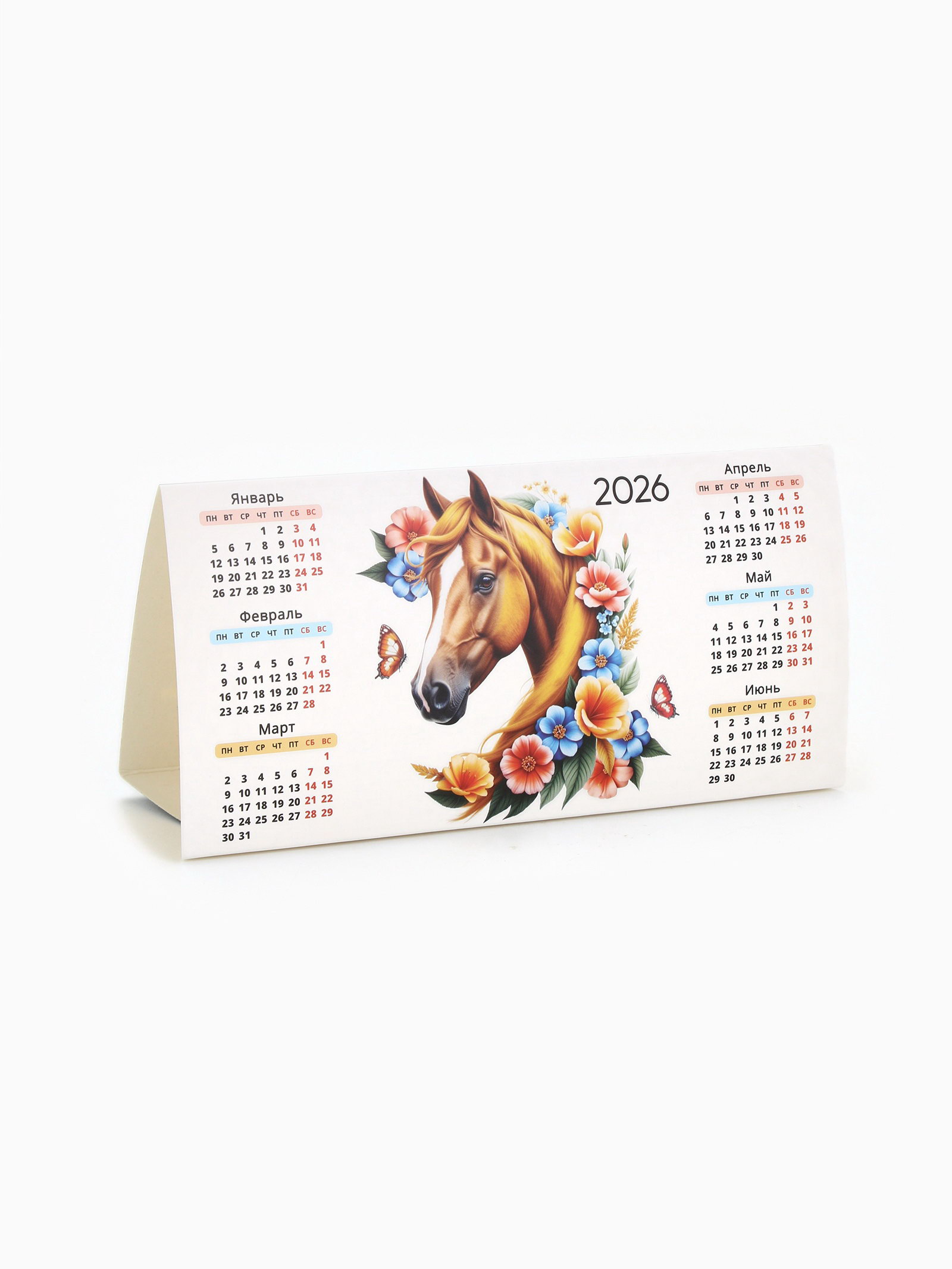 Календарь 2026 треугольный настольный "Лошадь с цветами", Сима-ленд, Россия