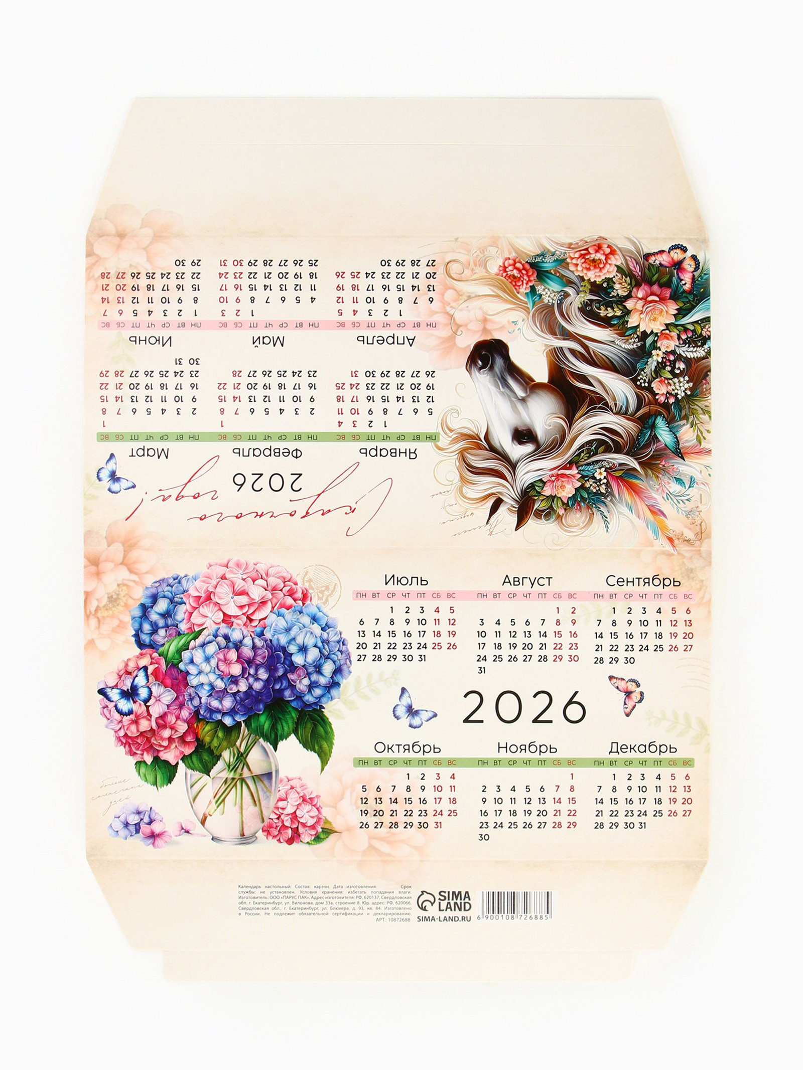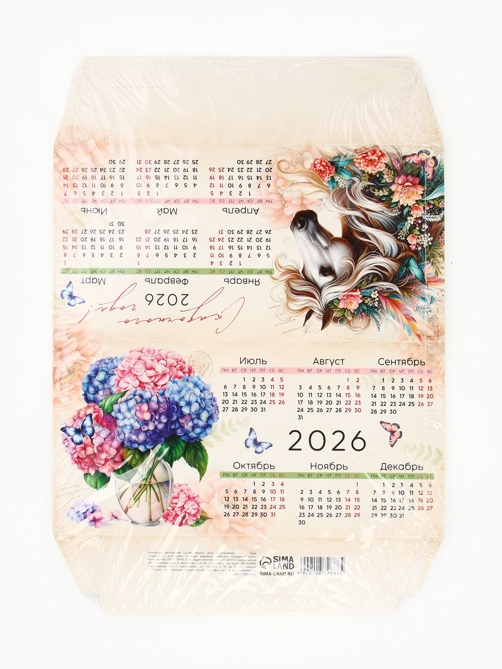Размер упаковки: 21 x 0.1 x 28 см. tnved: 4820103000 Символ года: Символ года 2026 (Лошадь) Вид: Настольные Набор: Нет Тематика праздника: Новый год Тематика: Животный мир | ||