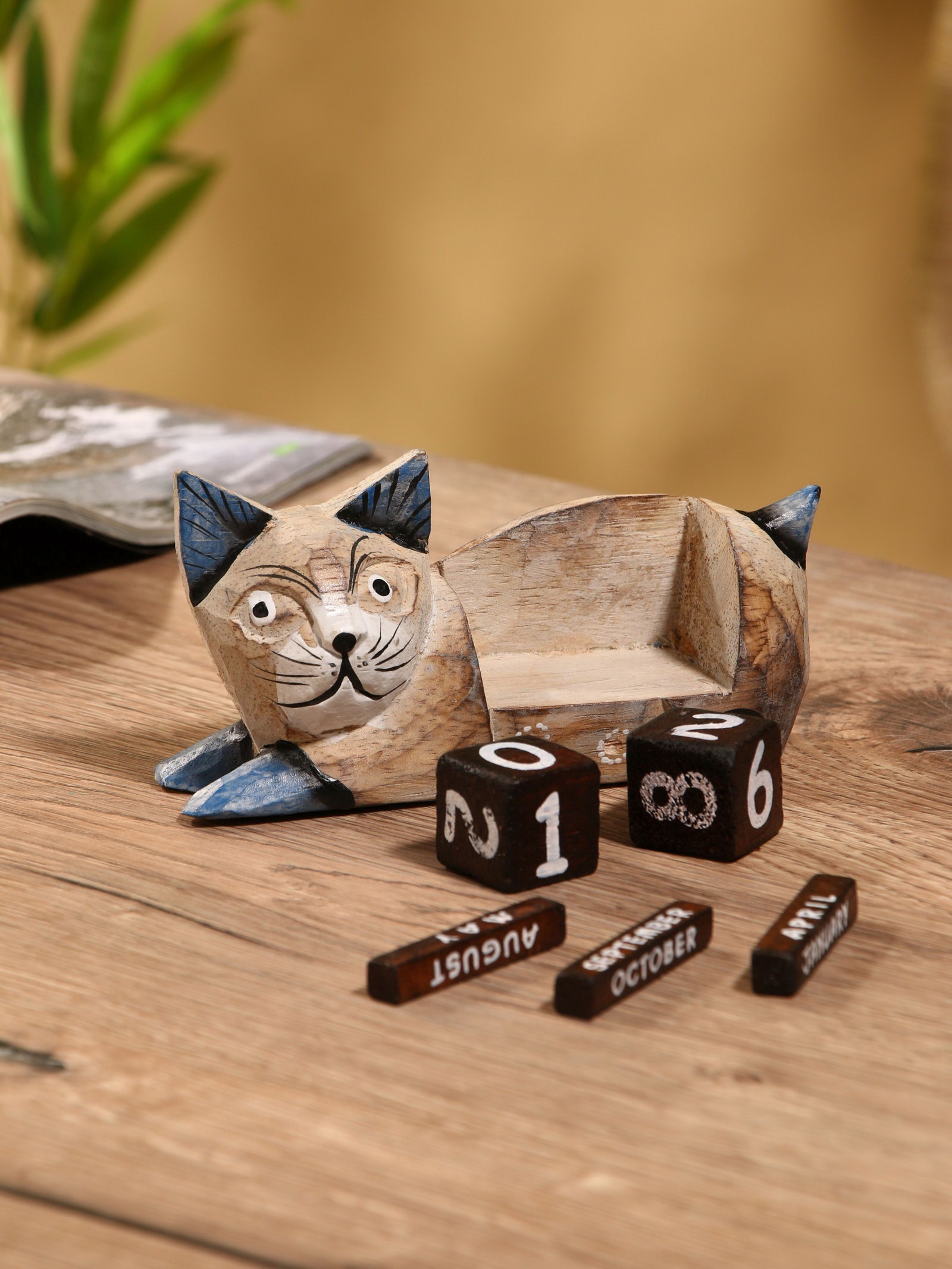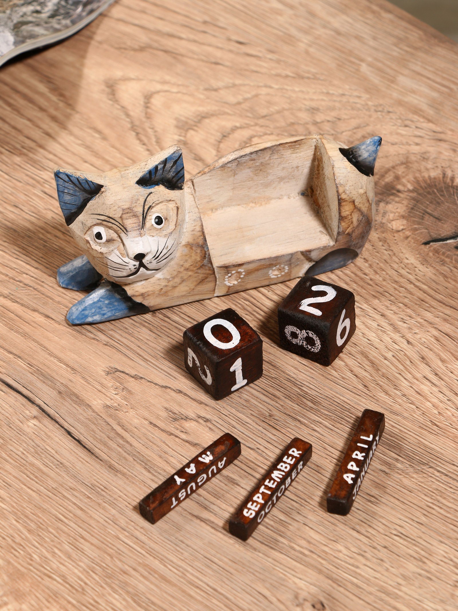 Вечный календарь "Кошка", 13x4x6.5 см, дерево, 4x13x6.5 см., Индонезия