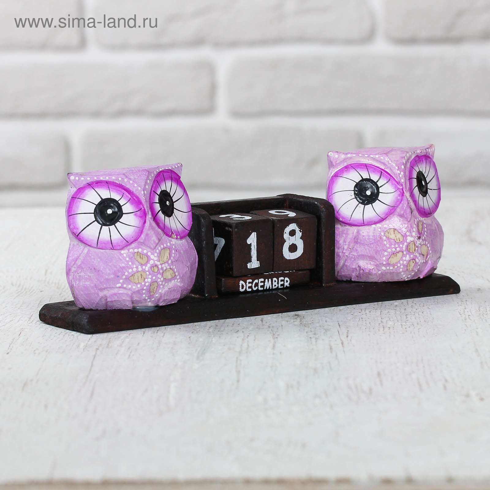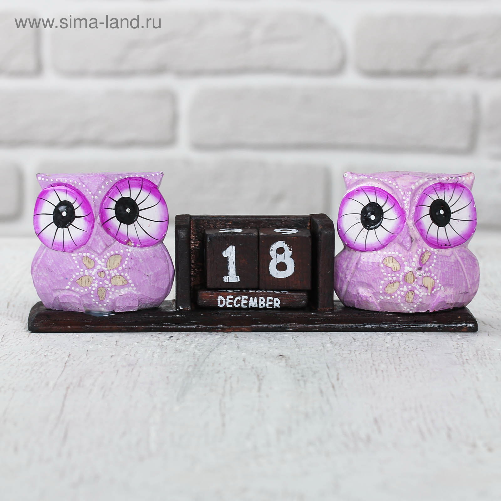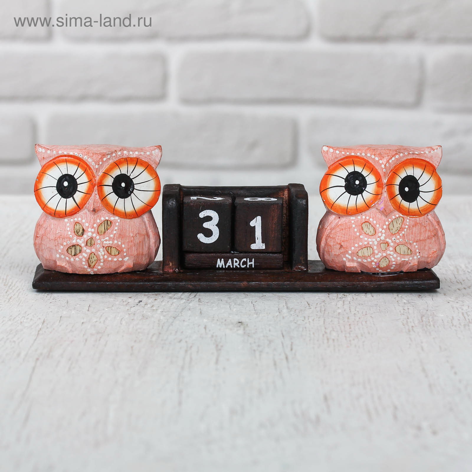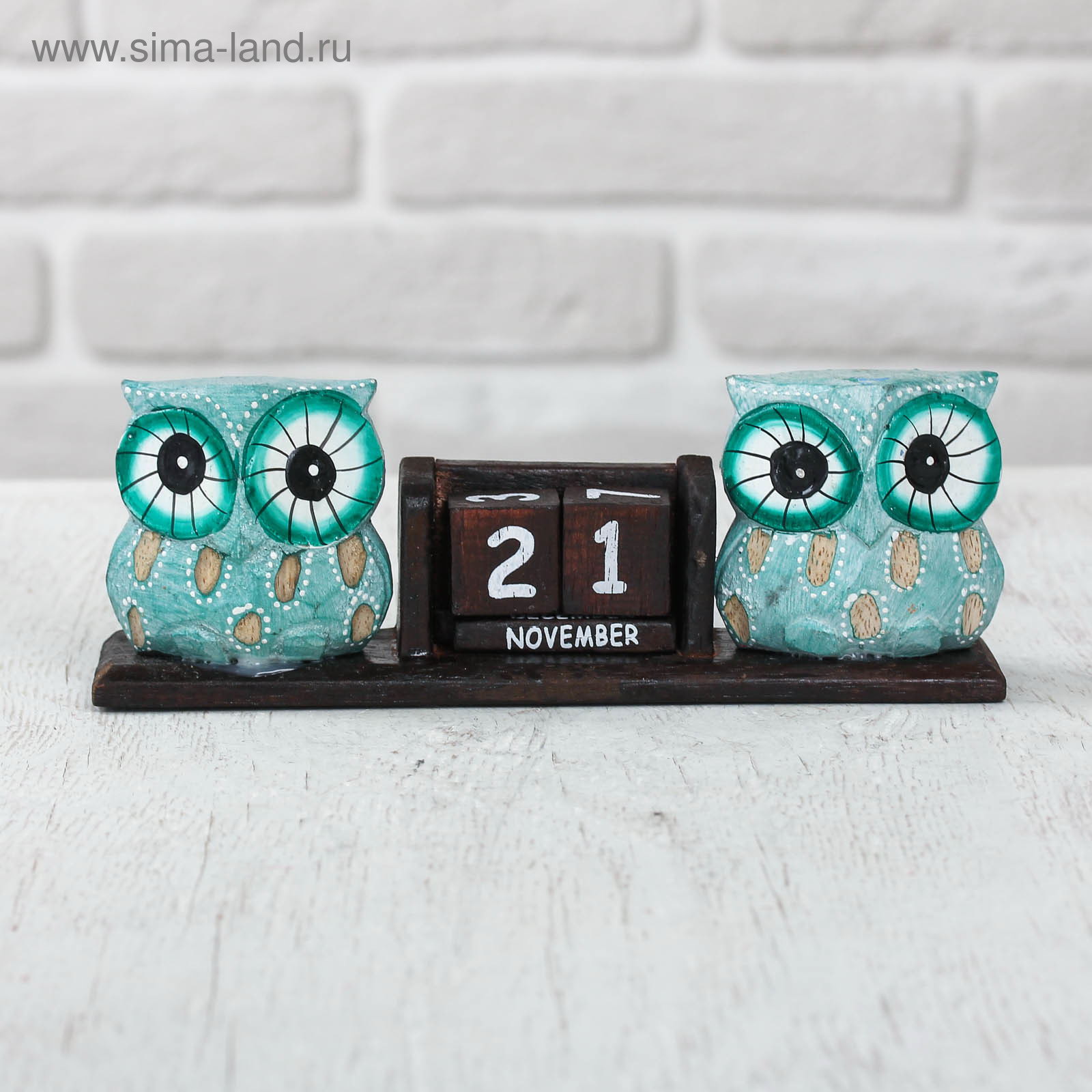 Деревянный календарь "Совы" МИКС 20х5х7 см, 5x20x7 см., Индонезия