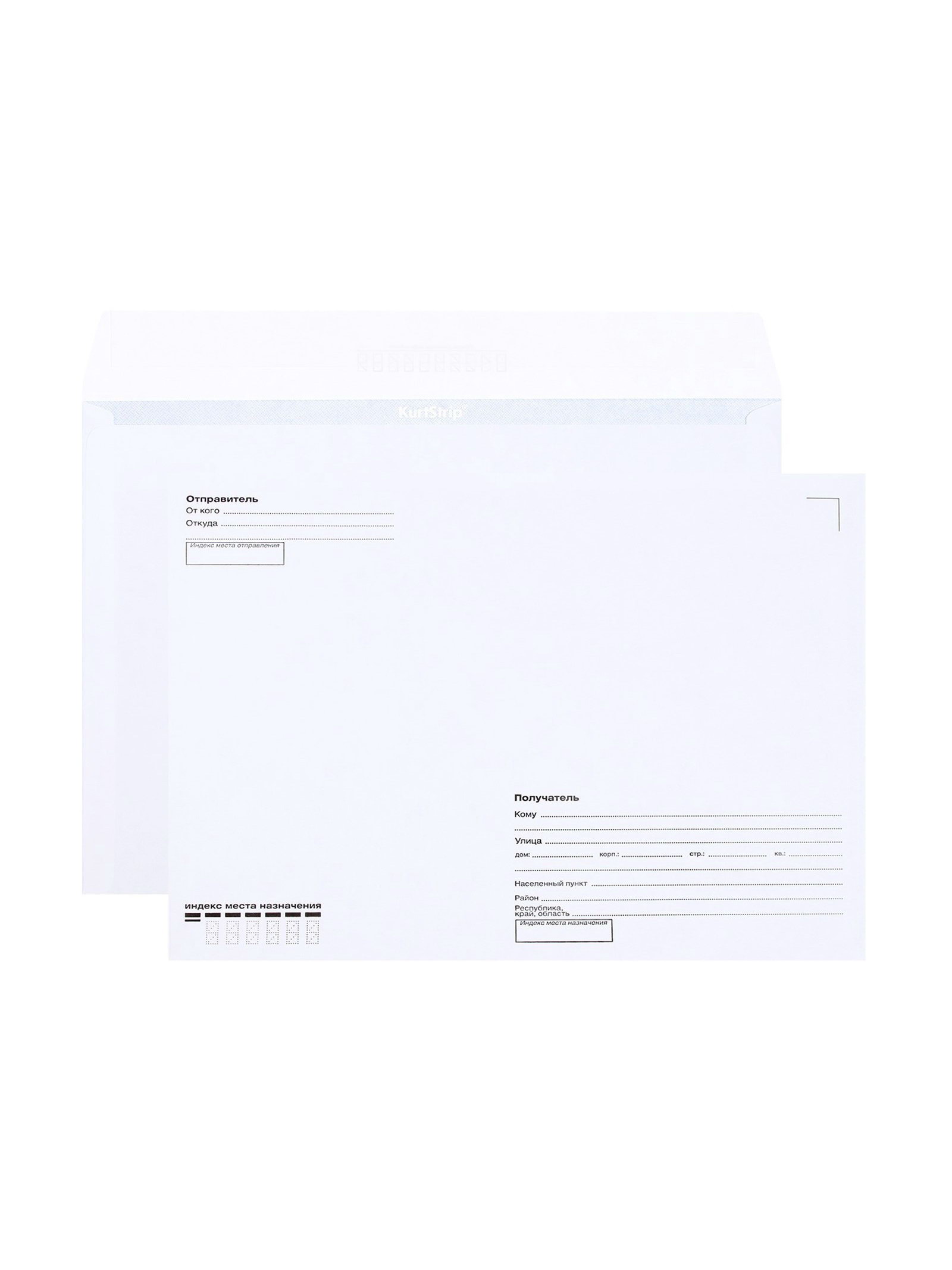 Конверт почтовый С4 229 x 324 мм, поле "Кому-куда", без окна, отрывная лента, внутренняя запечатка, 90 г/м2, Курт, Россия