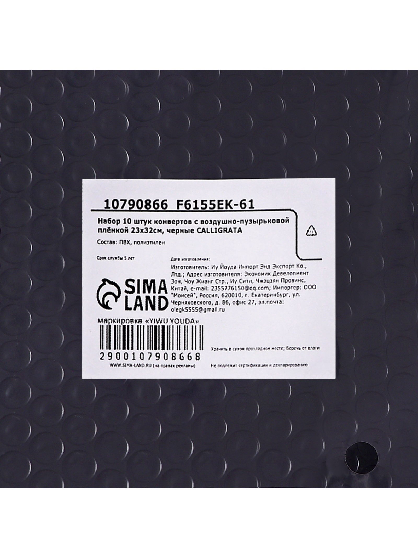 Набор конвертов с воздушно-пузырьковой плёнкой, 23x32 см, 10 штук, черные, 23x32x0.5 см., Calligrata, Китай