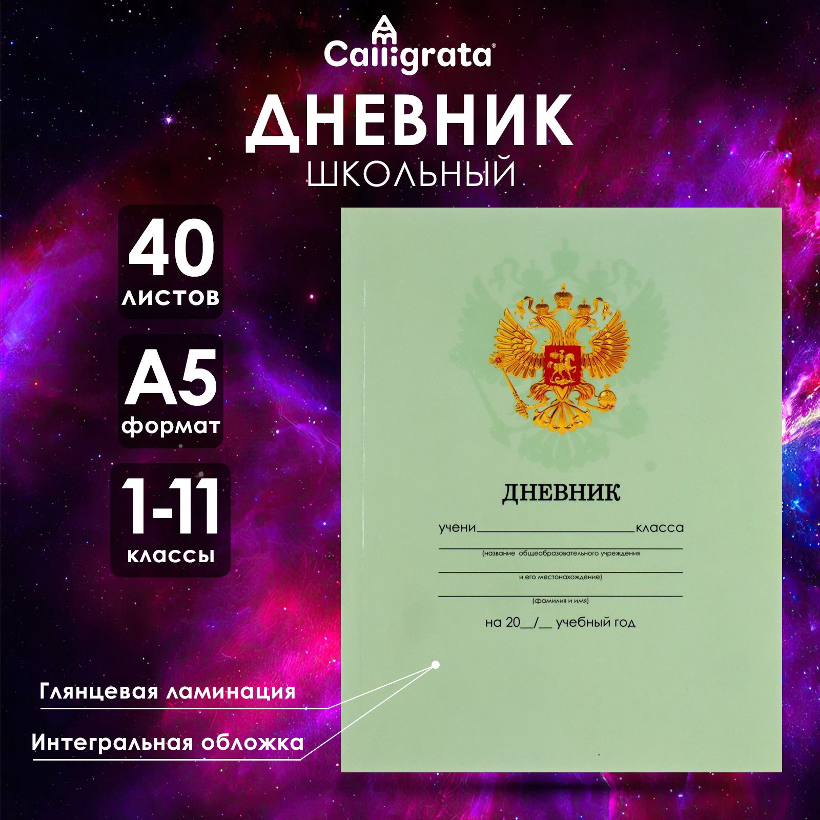 Дневник универсальный для 1-11 классов, "Зеленый нежный однотонный ", интегральная, Calligrata, Россия
