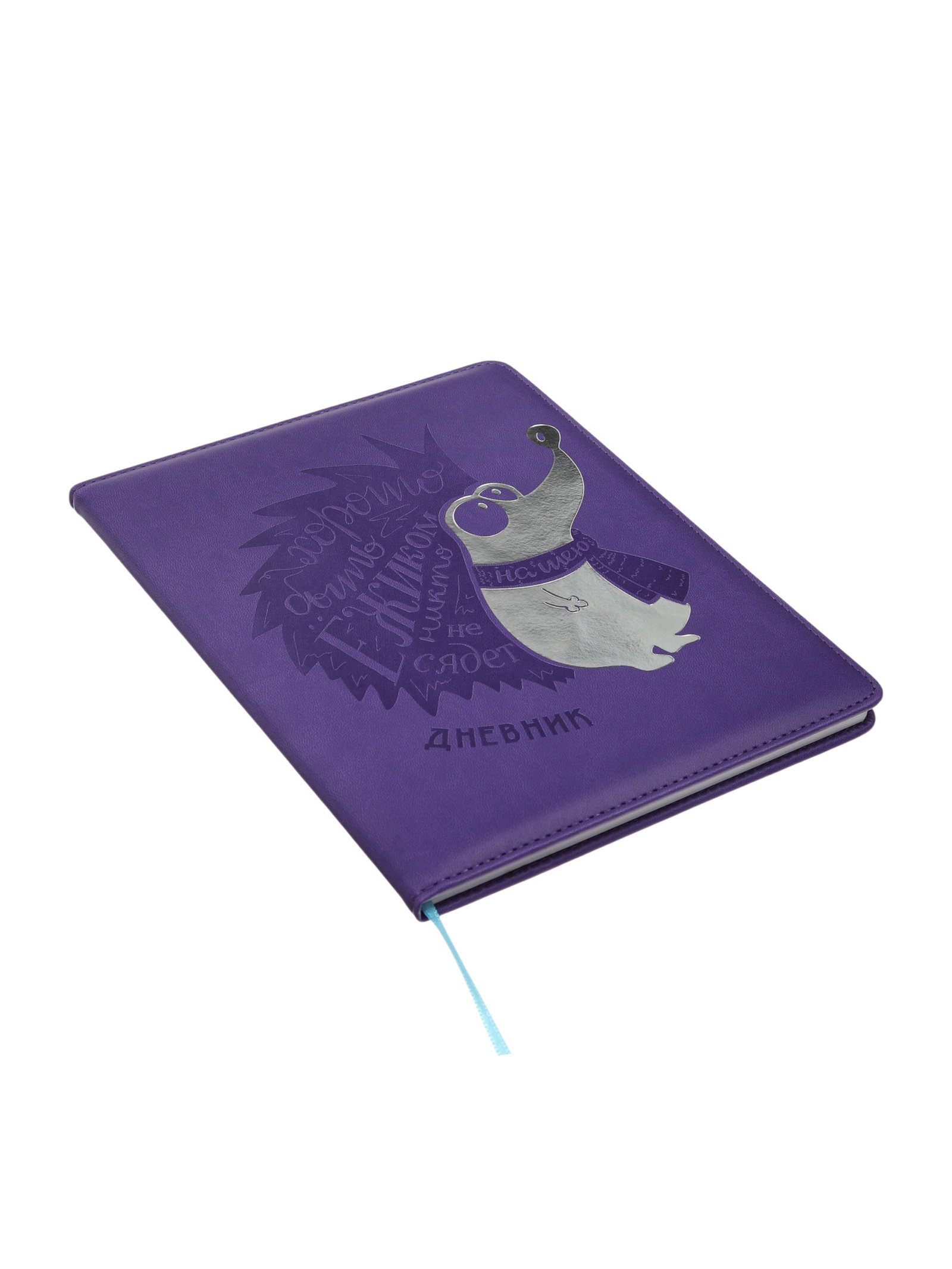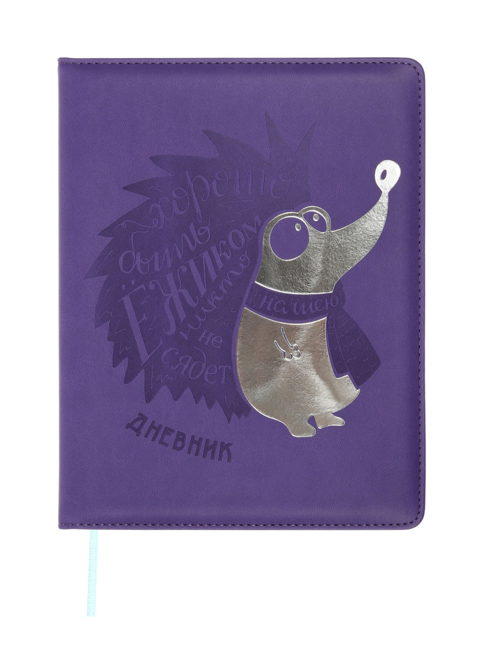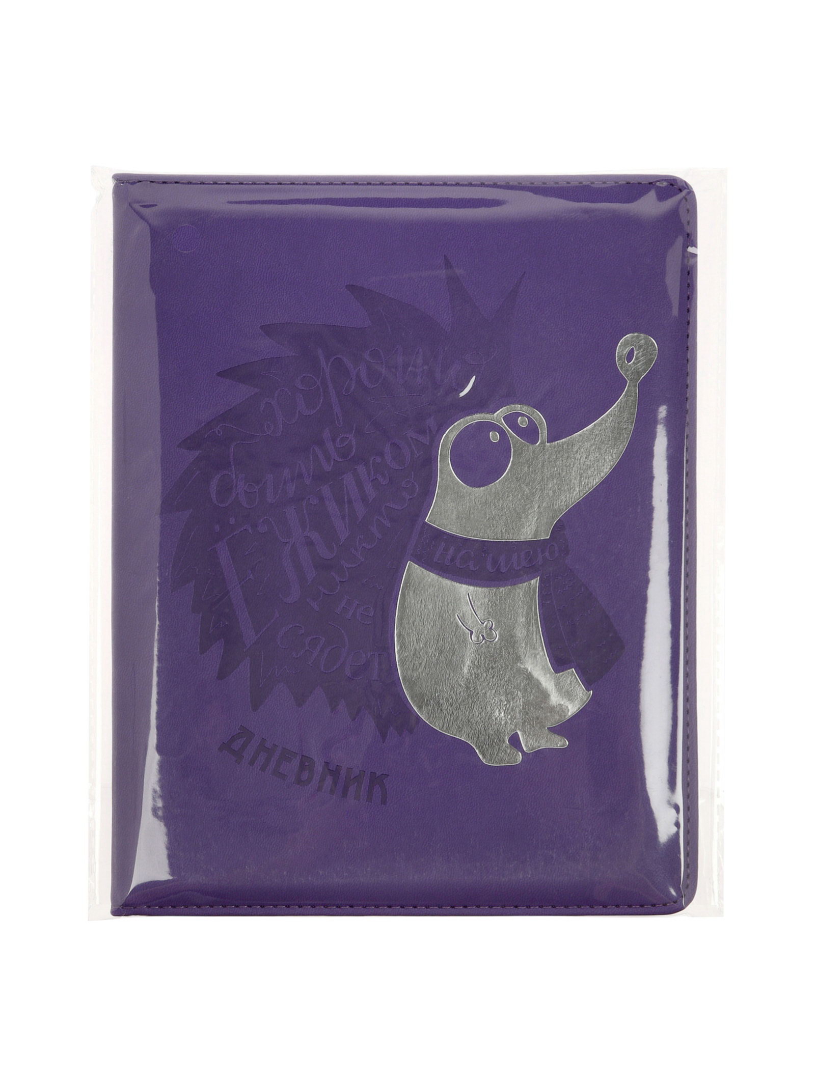 Дневник школьный 1-11 класс, лассе, обложка искуственная кожа фиолетовая, Ежик, 17x21.6x1 см., Китай