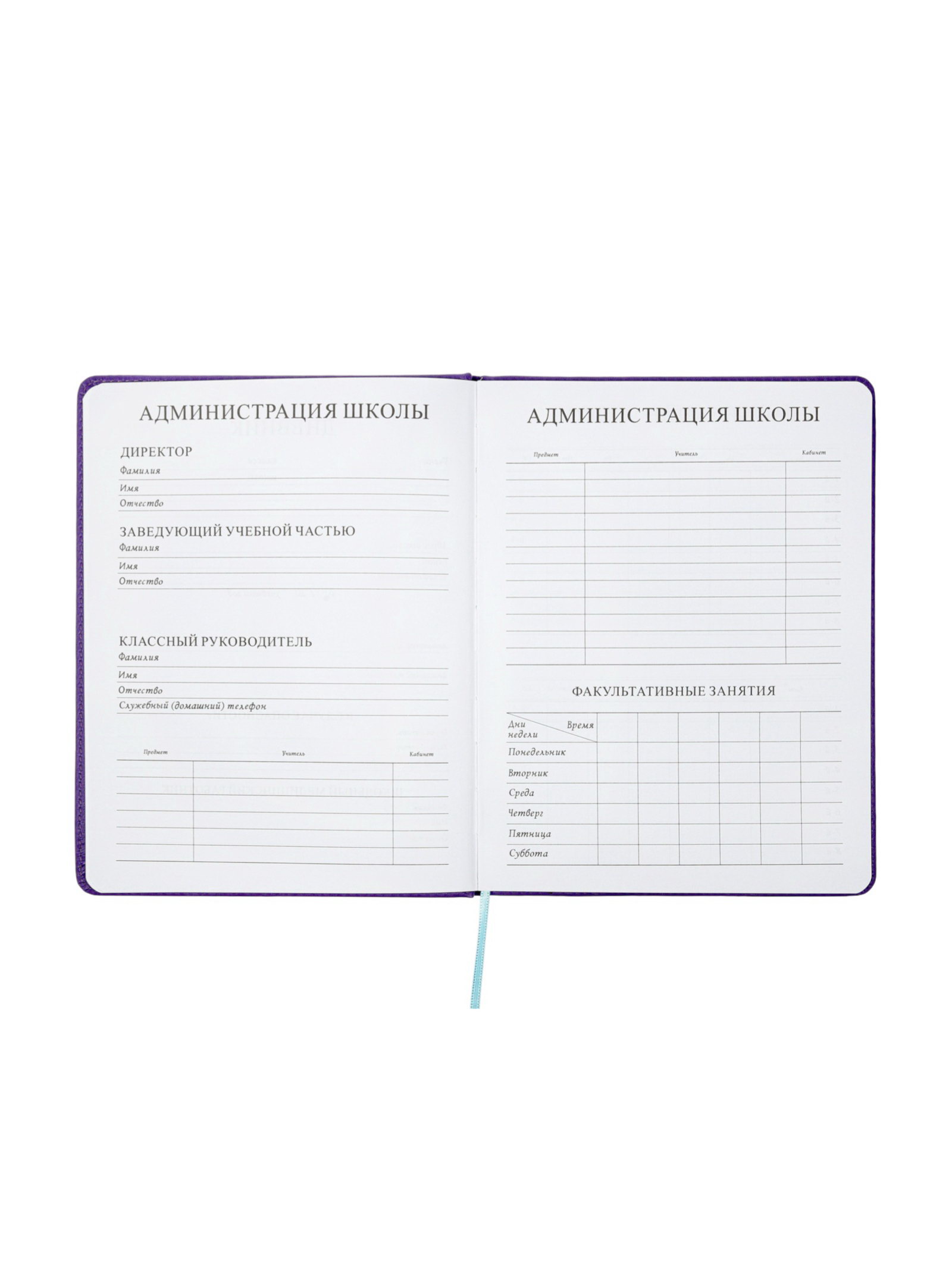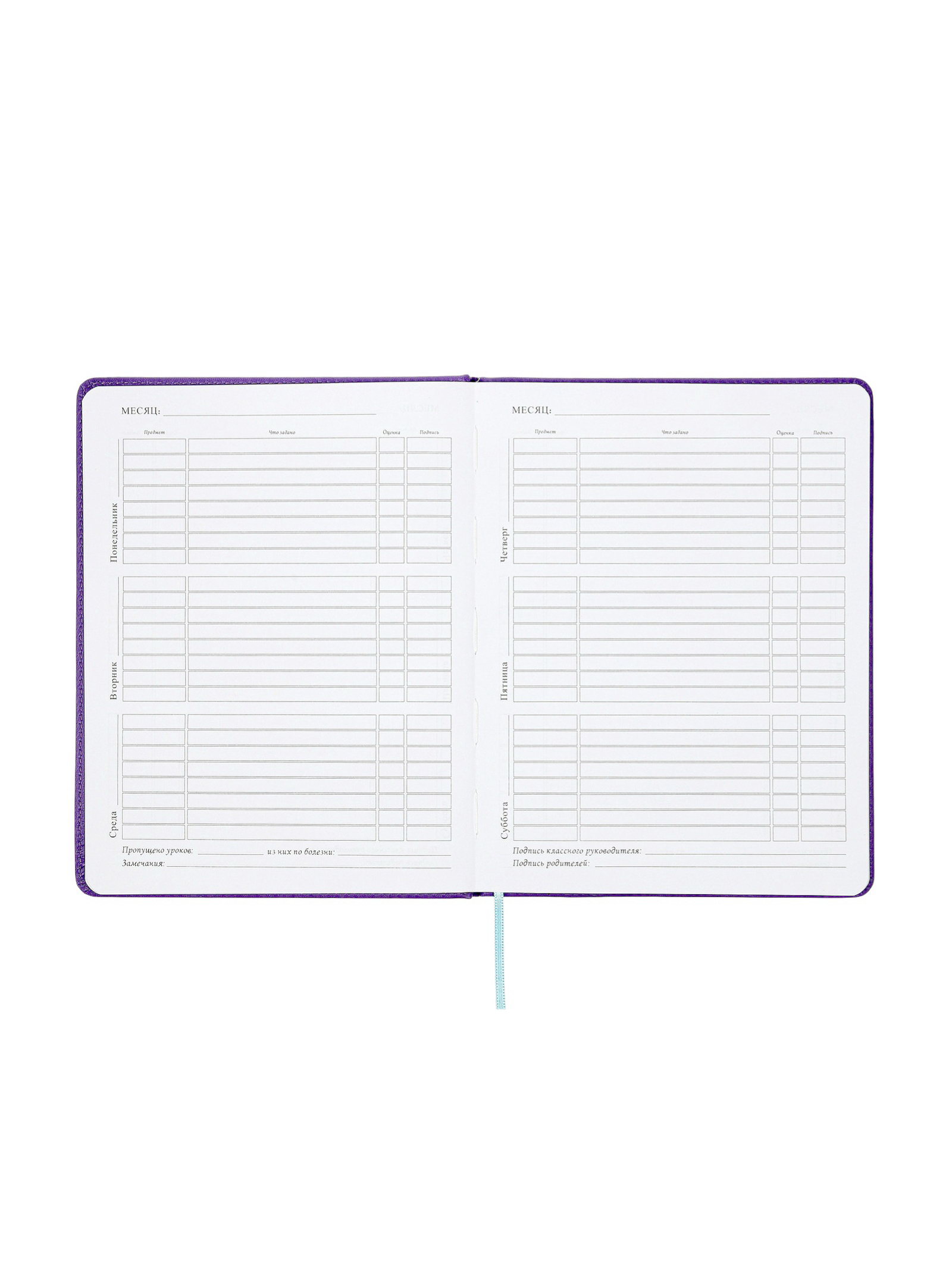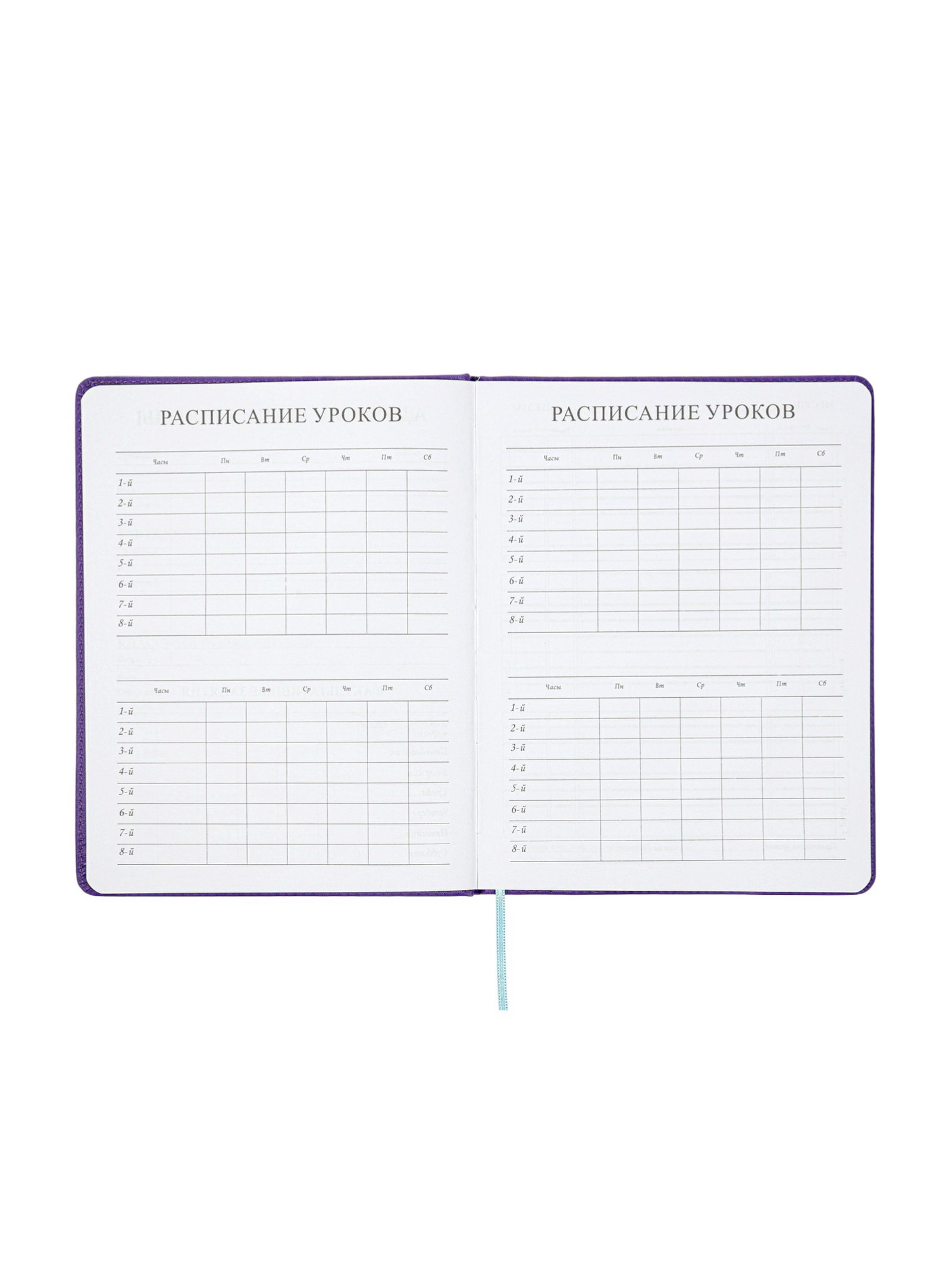 Дневник школьный 1-11 класс, лассе, обложка искуственная кожа фиолетовая, Ежик, 17x21.6x1 см., Китай