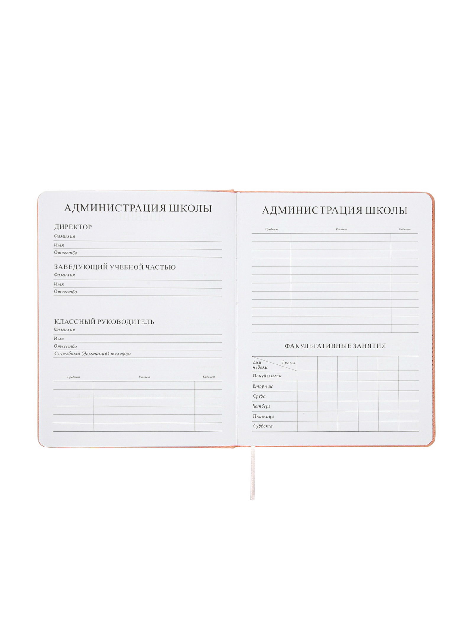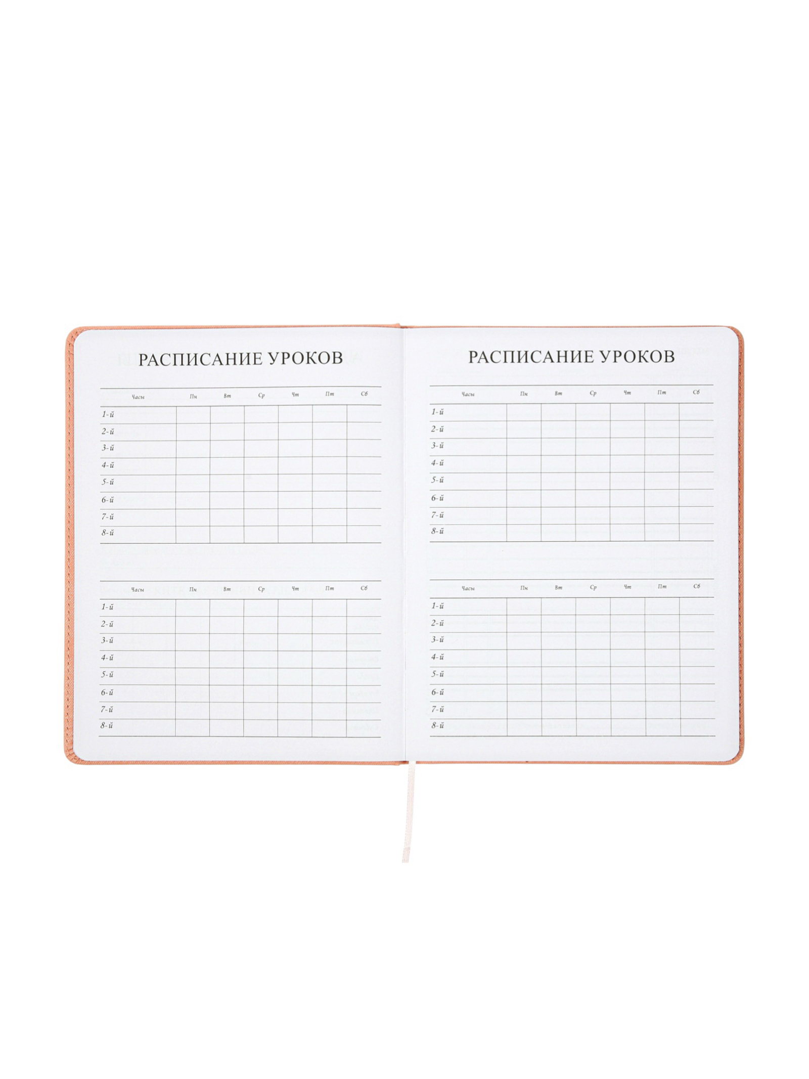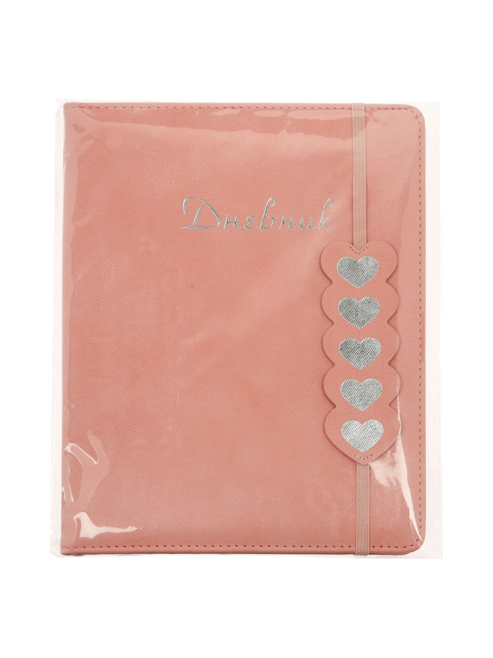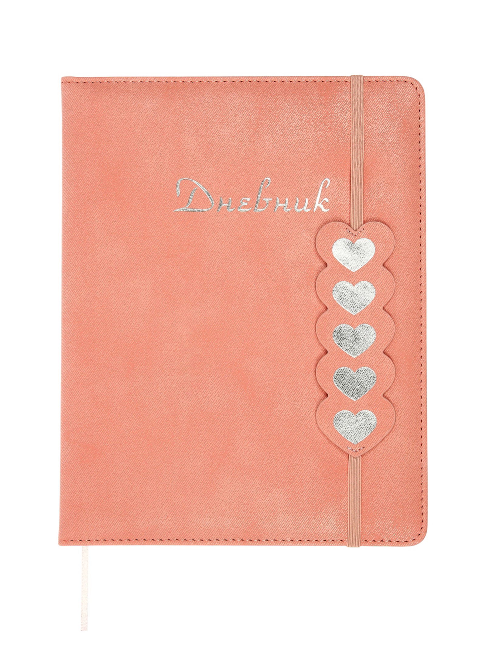 Дневник школьный 1-11 класс, лассе, обложка искуственная кожа персиковая, Сердечки, 16.8x21.8x1 см., Китай
