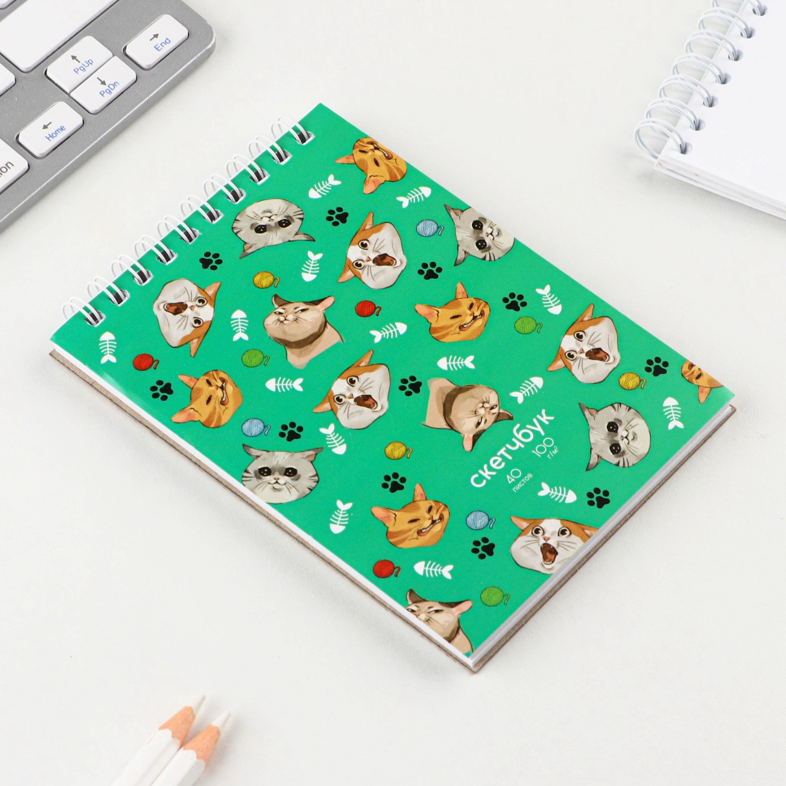 Скетчбук А6, 40 л 100 г/?2 "Коты", ArtFox, Россия