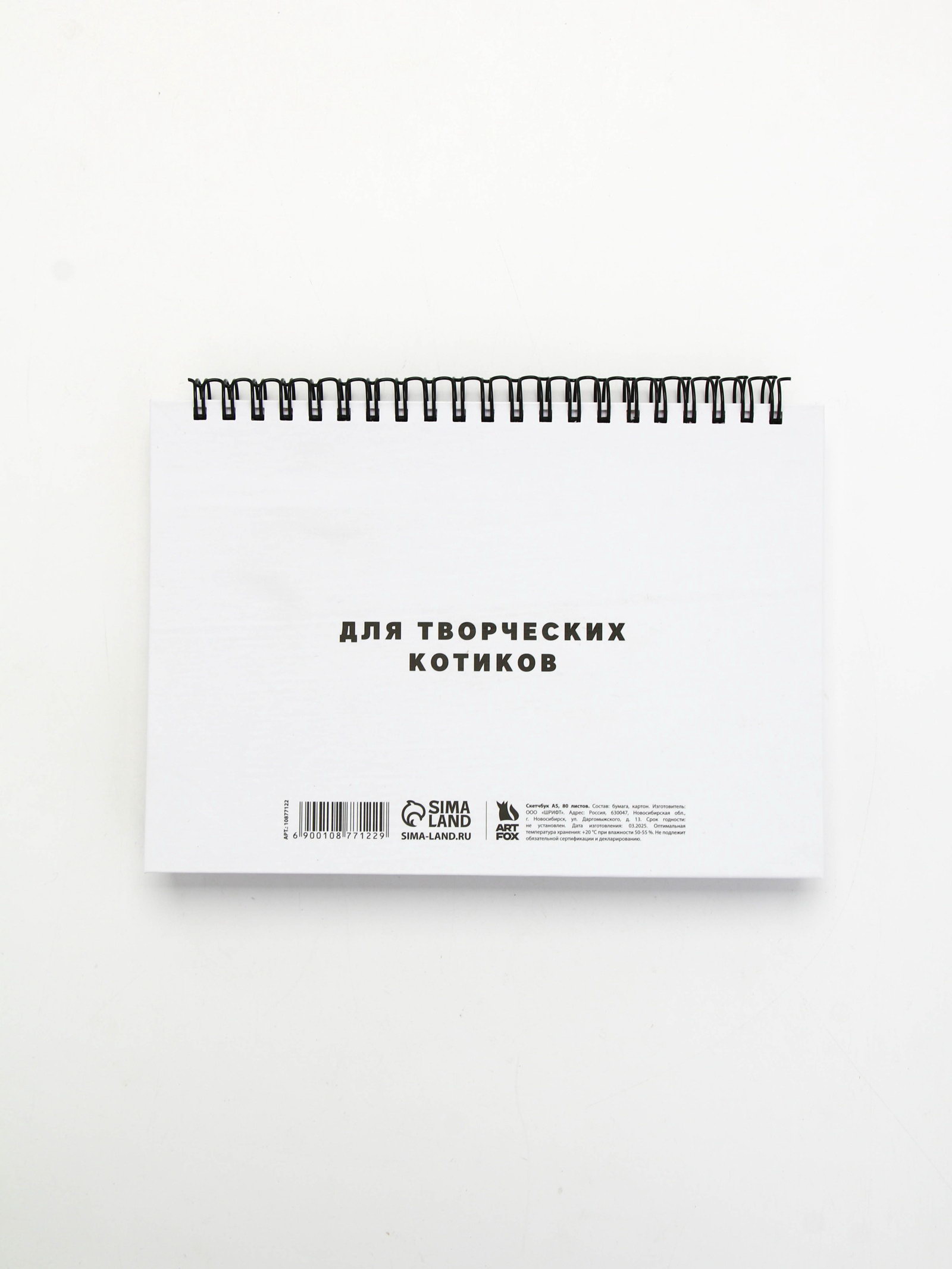 Скетчбук в твердой обложке на гребне А5 80 л 100 г/м "Котик", ArtFox, Россия